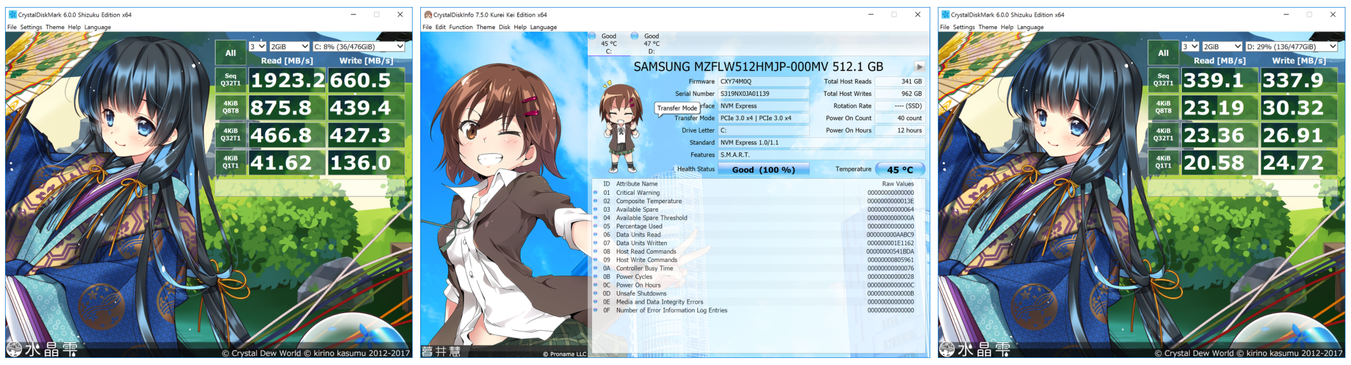 SSD는 Surface Pro 2017 과 동일한 삼성전자 PM971 M.2 NVMe SSD 입니다. 읽기성능은 1923MB/s , 쓰기 660.5MB/s 로 측정되었습니다.