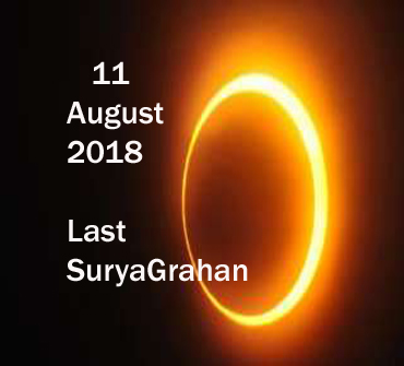 2018 का आखिरी सूर्य ग्रहण 11 अगस्त को देखने को मिलेगा। इससे पहले 2018 में सूर्य ग्रहण 15 फरवरी और 13 जुलाई को लगा था। साल का आखिरी सुर्यग्रहण भारत में दिखाई नहीं देगा। इसे नॉर्थ अमेरिका, नॉर्थ पश्चिमी एशिया, साउथ कोरिया, मास्को, चीन जैसे कई देशों के लोग देख पाएंगे। भारत में इस सूर्यग्रहण का सूतक काल 10 अगस्त की देर रात 12 घंटे पहले 1 बजकर 32 मिनट पर शुरू हो जाएगा । सूतक काल का प्रभाव ना के बराबर ही माना जाएगा।