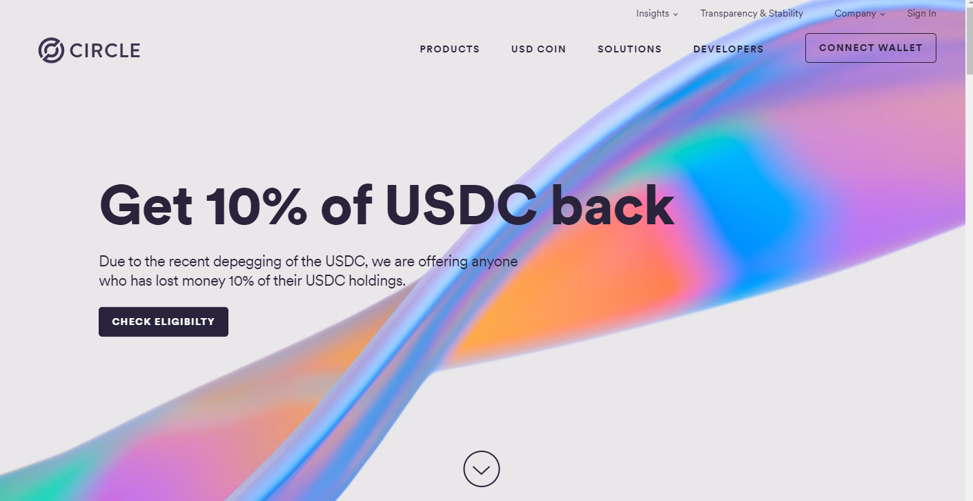 As you all know, After #svb crash, #usdc lost about 10% of its value. I was visiting twitter, then I saw this post. This user is saying #circle is paying 10% of your #USDC holding to cover the losses. It was really convincing. Then I visited the site and realized it is indeed a #scam site. What they're doing is, targeting browser based wallets like # metamask, and after connecting, they're stealing all the funds reamaining there. But, luckily, their wallet syncing is not working, So I hope no one lost their money.