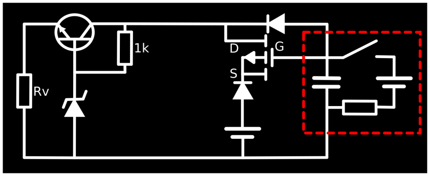 The part on the left (consisting of the bipolar transistor, the base resistance, the TVS diode and the consumer resistance) is a simple voltage regulator circuit as it can be found on wikipedia. The TVS diode of the circuit limits the voltage of the consumer to a fixed value. So if you choose a TVS diode with a breakthrough voltage of 12 Volt, the consumer will get a maximum voltage of 12 Volt. The bipolar transistor regulates the current flow in a way that it will be constant for the consumer.