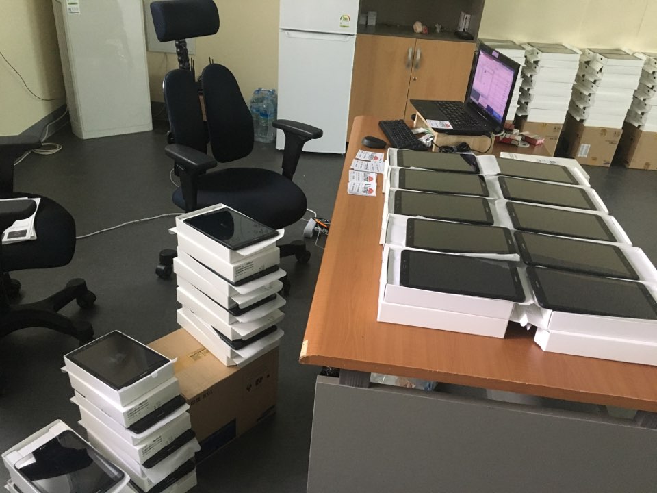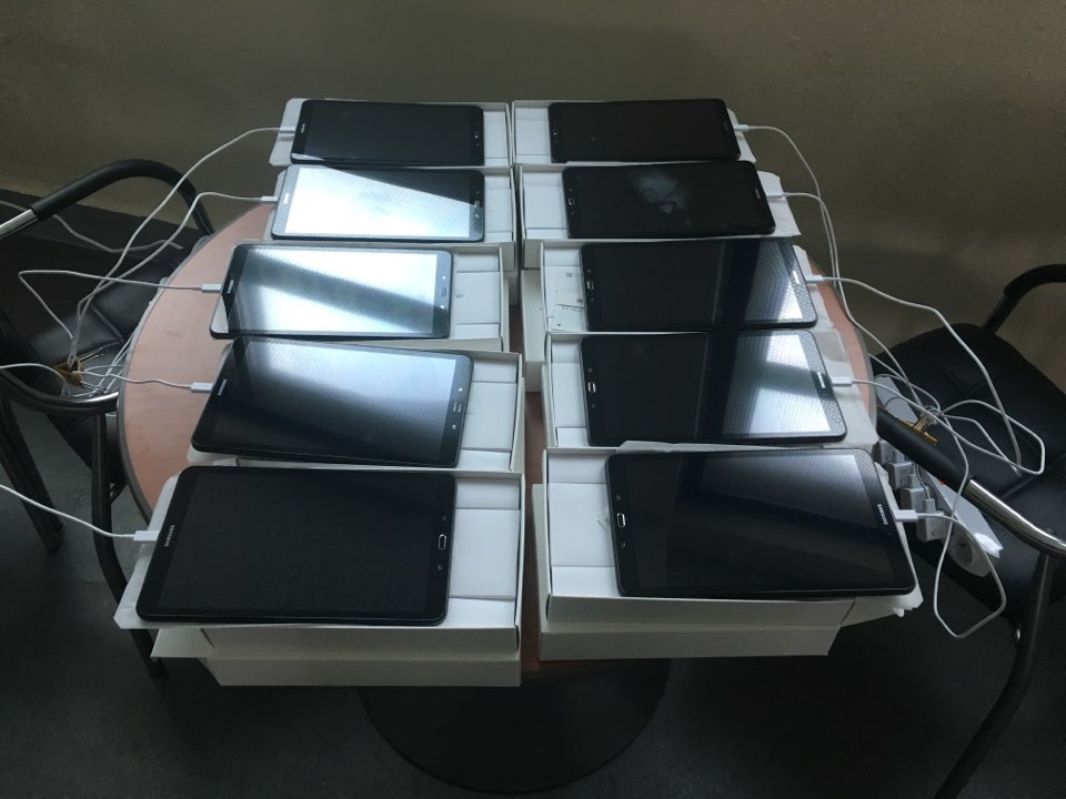 지금 저는 200대의 태블릿PC를 하나하나 셋팅하고 있습니다.