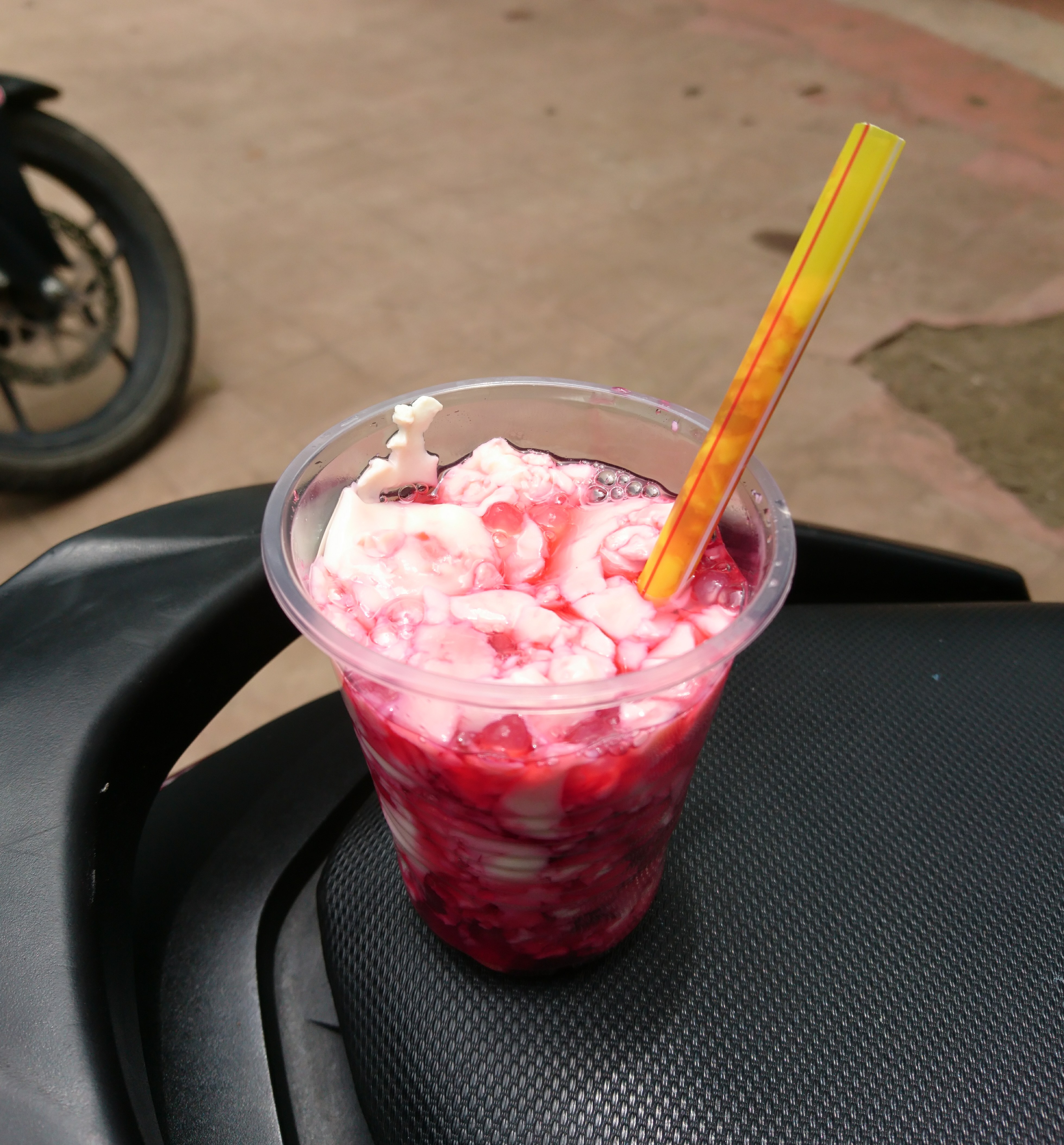 I was able to taste strawberry taho(made of soy bean and flavored with strawberry) but it was too sweet for me. 😁