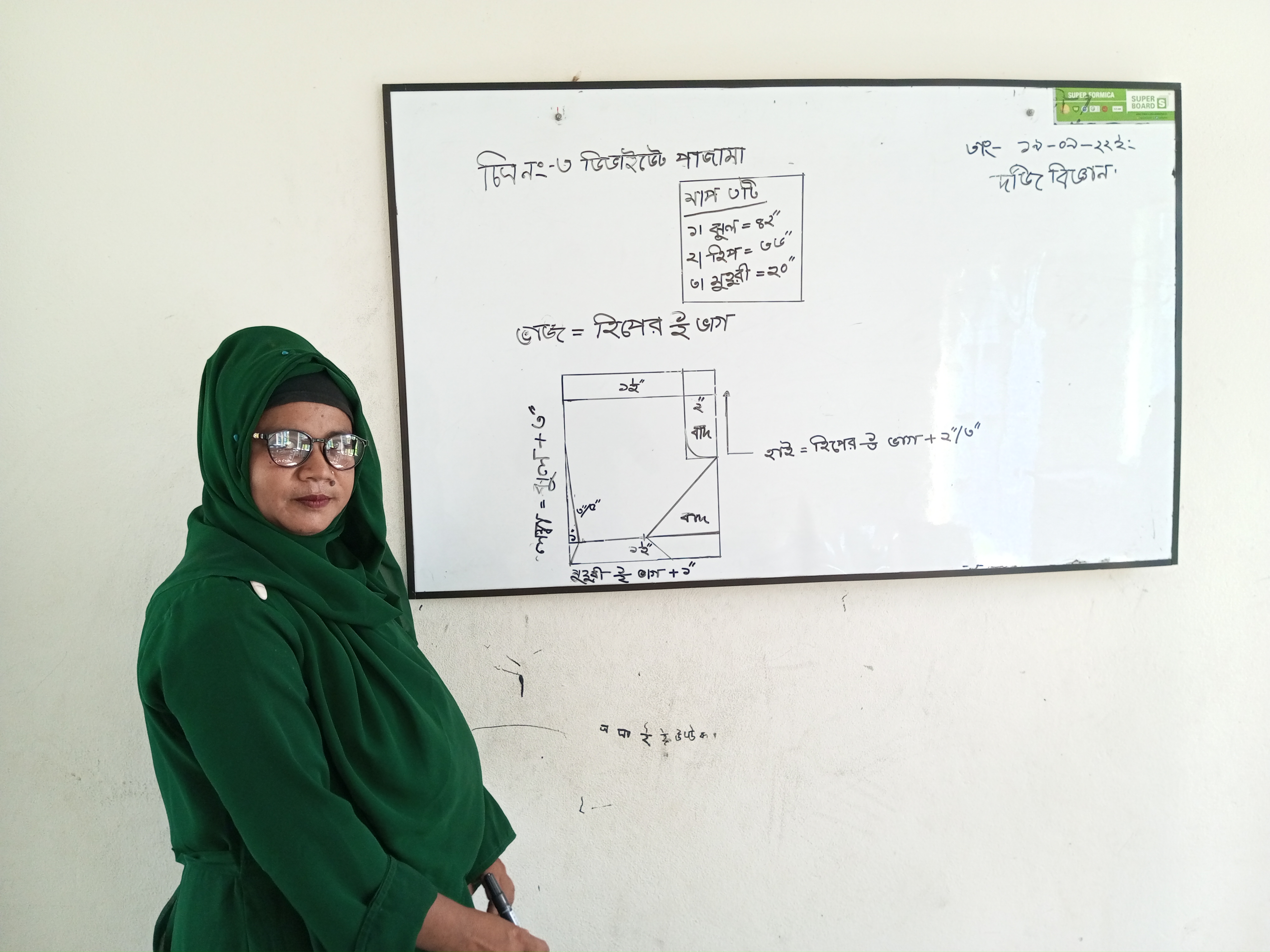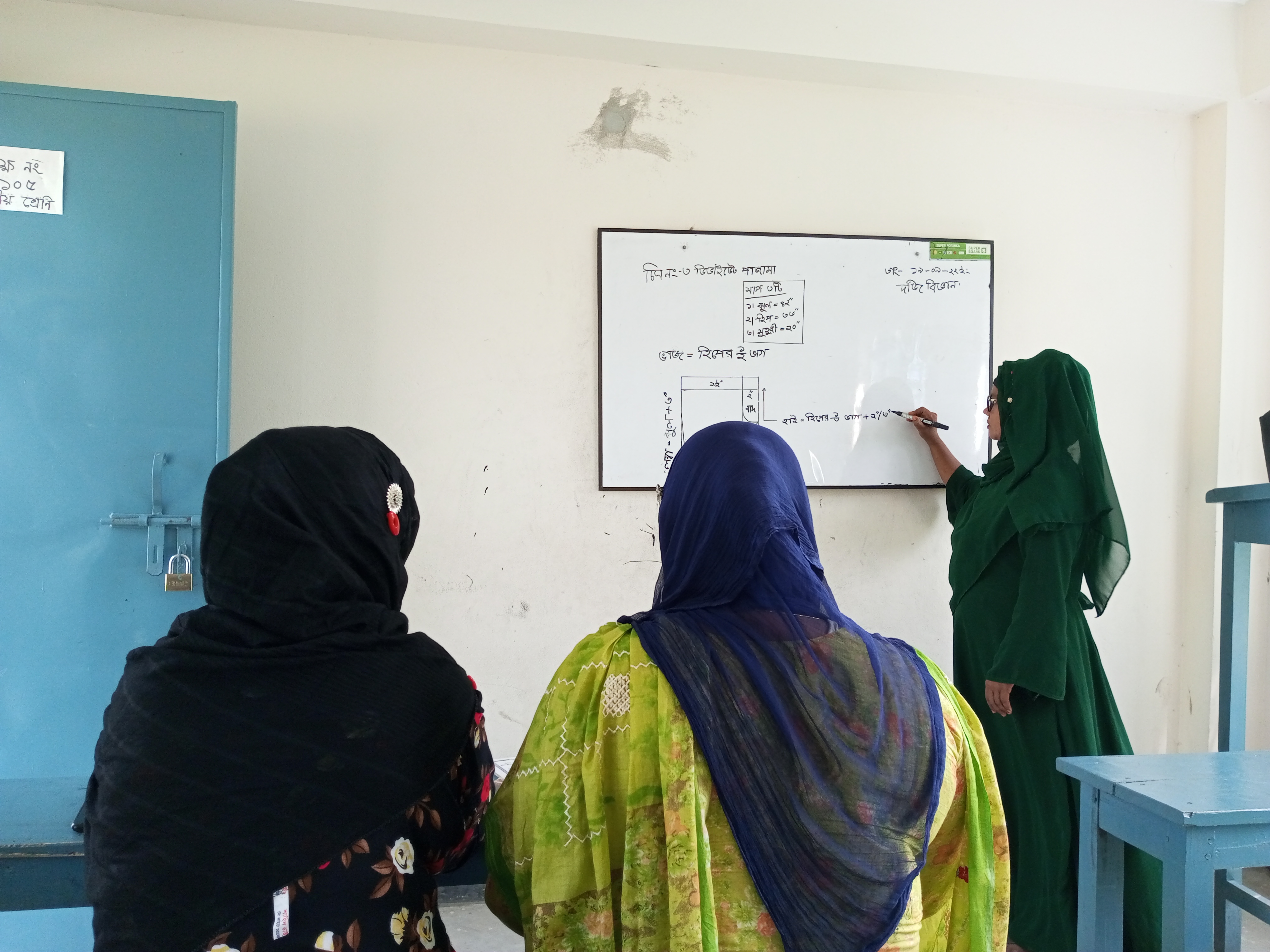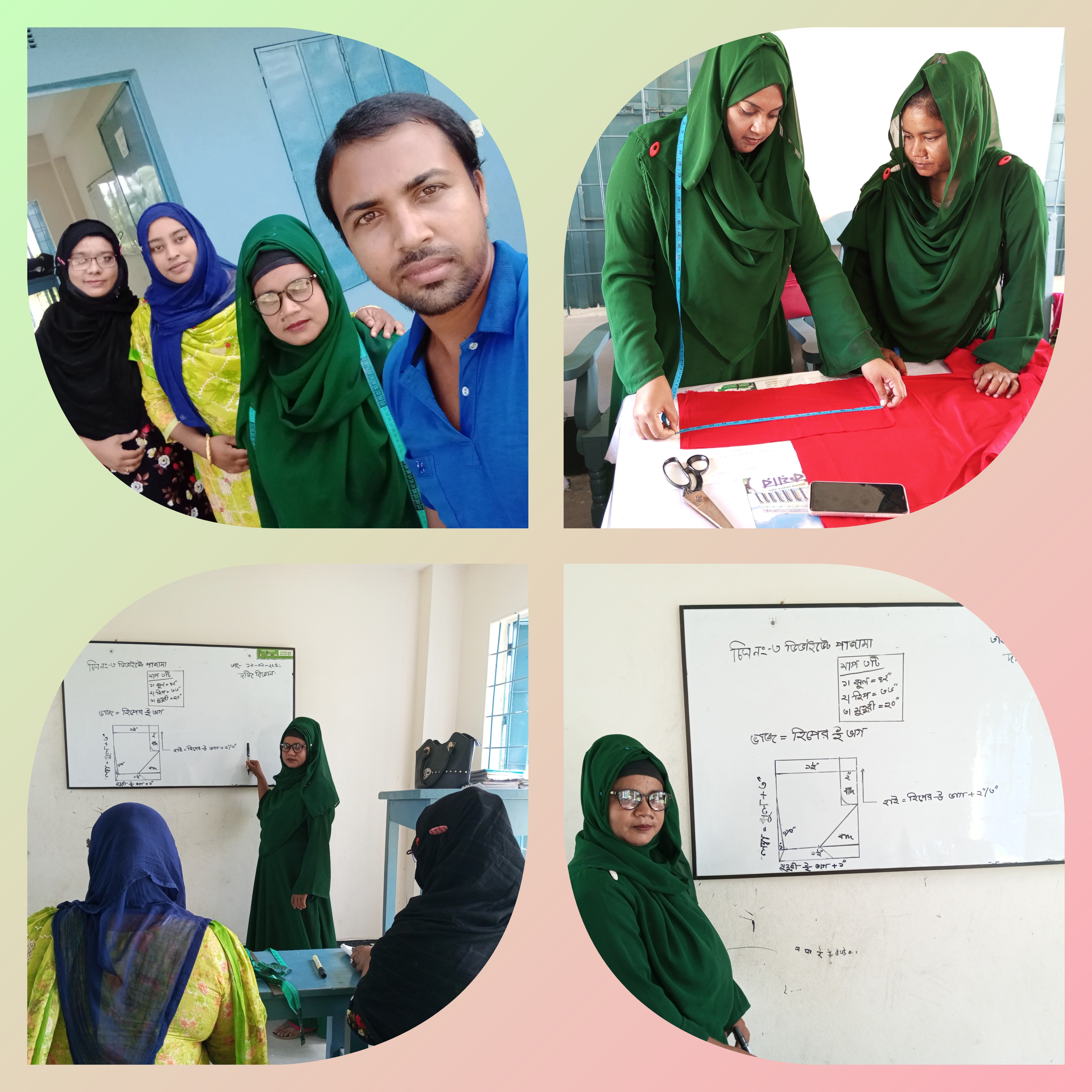 বাইরে থেকে আগত ছাত্রীরা ক্যামেরার সামনে আসতে তেমন একটি ইচ্ছা পোষণ করে নাই। তাই তাদের বাদ দিয়ে এনাদের শুধু ফটোগ্রাফি করলাম আর ক্লাসের বিস্তারিত বিষয়গুলো দেখার চেষ্টা করলাম। হয়তো এই বিষয়ে ধারণা কম, বুঝলাম কম তারপরেও যতক্ষণ ক্লাসে উপস্থিত ছিলাম এতে বুঝতে পারলাম উনি খুব ভালোভাবেই তাদের প্রশিক্ষণ দিচ্ছেন। ম্যাডামের প্রশিক্ষণ দেওয়ার ধরণটা খুবই চমৎকার ছিল। সিটের হিসাব খুব সুন্দর করে বুঝাছিলেন কতটুকু করে কাটতে হবে কিভাবে মাপ দিতে হবে এই সমস্ত বিষয়ে বলছিলেন দেখলাম।