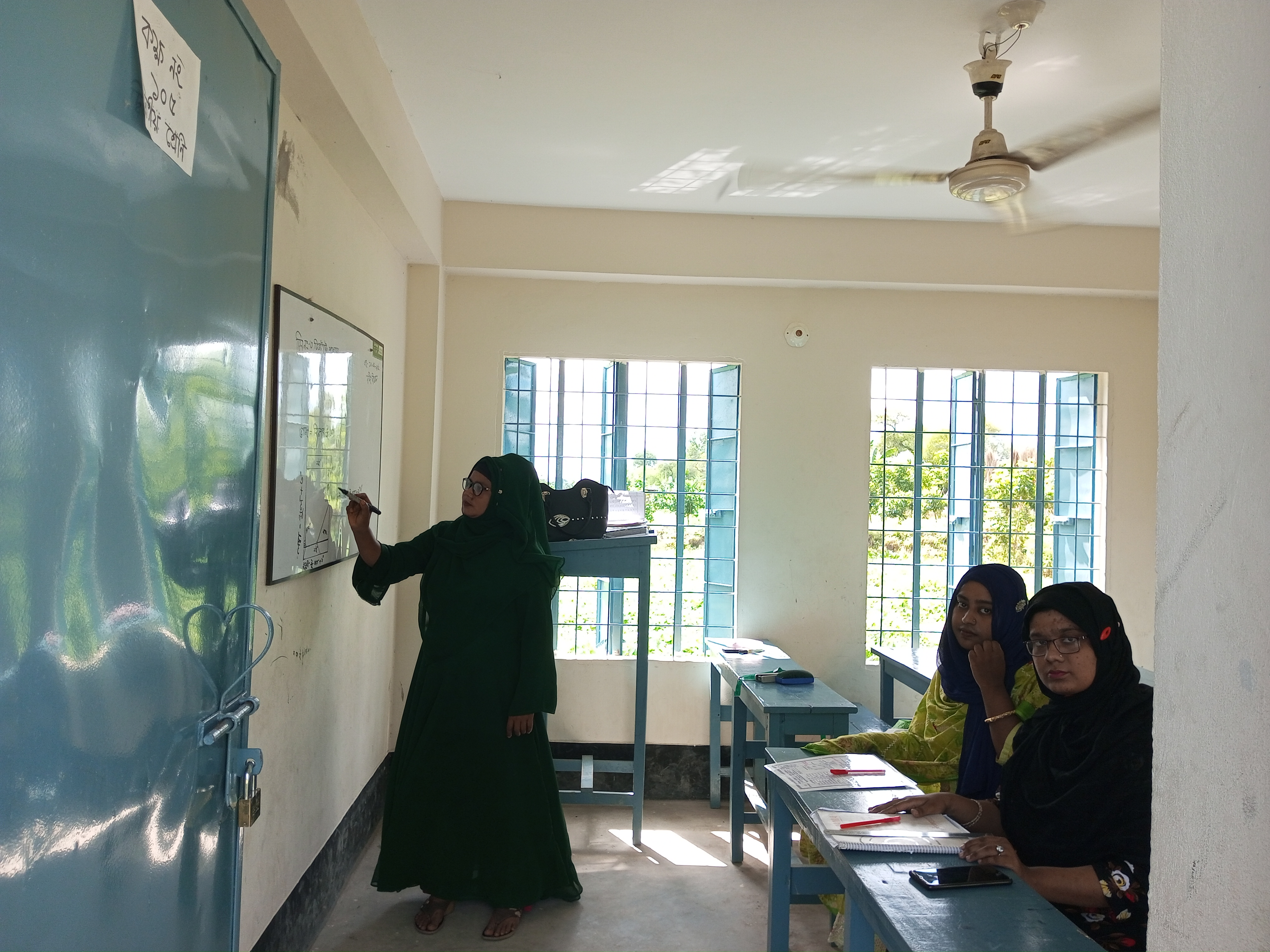 মহিলাদের ক্লাসে বেশিক্ষণ না থাকাটাই বেটার মনে করে কয়েকটা শুধু সেলফি তুলে দ্রুত বের হওয়ার চেষ্টা করলাম কারণ অন্যান্য ছাত্রীদের ক্লাসে উপস্থিত হওয়ার সময় হয়ে আসছিল। যেহেতু উনারা অন্য রুমে কাজ করছিল সে ফাঁকে এ ক্লাসটা আমার দেখা ও ধারণা নেওয়া হলো। আমি অবশ্য পাশের রুমটাতেও গিয়েছিলাম শুধু ফটো উঠাতে পারি নাই যেহেতু উনারা কাজ করছিলেন। তবে আজকে অফিস রুম থেকে কয়েকটা ফটো উঠিয়েছিলাম যে সমস্ত বিষয়ে কাজ করেন। তার একটি ফটো এর পাশাপাশি আপনাদের মাঝে শেয়ার করলাম ।