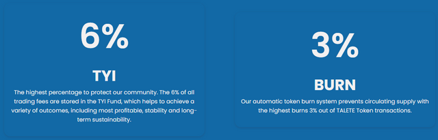 This additional support can become important in the event of an extreme price drop of the $TALETE token or unforeseen black-swan event. It helps to establish a floor value for the $TALETE token.
