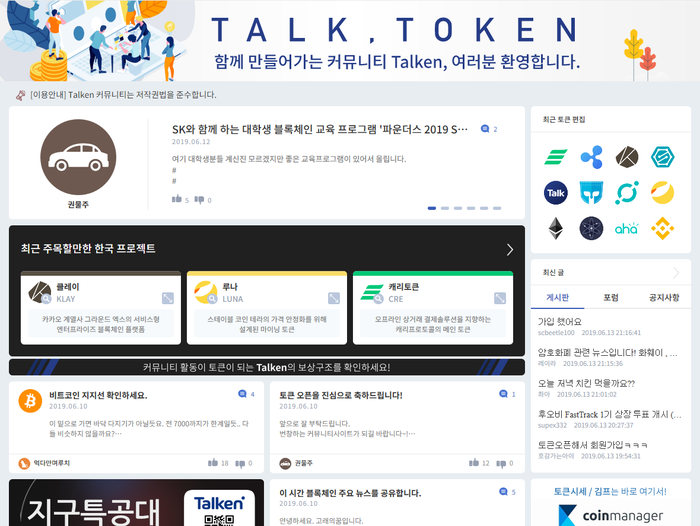 Talken(톡큰)은 기본적으로 커뮤니티 플랫폼인데요 자체 토큰인 TALK 토큰을 이용해