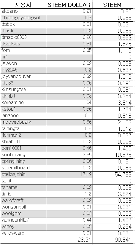 나머지 분들은 SBD 또는 STEEM을 제가 랜덤으로 일단 드리겠습니다.