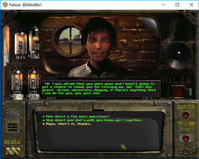 Here is where the dialog options stand out in fallout some can have consequences while here its just funny(option 2).
