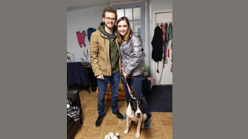 We got the first photo back from our New Hampshire rescue partners! Ziggy has found his family and gone home. He's pictured above with his new forever mom and dad.