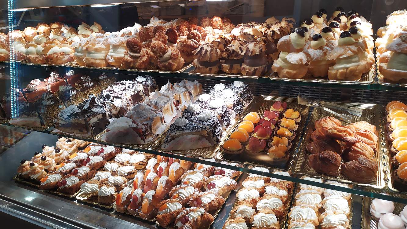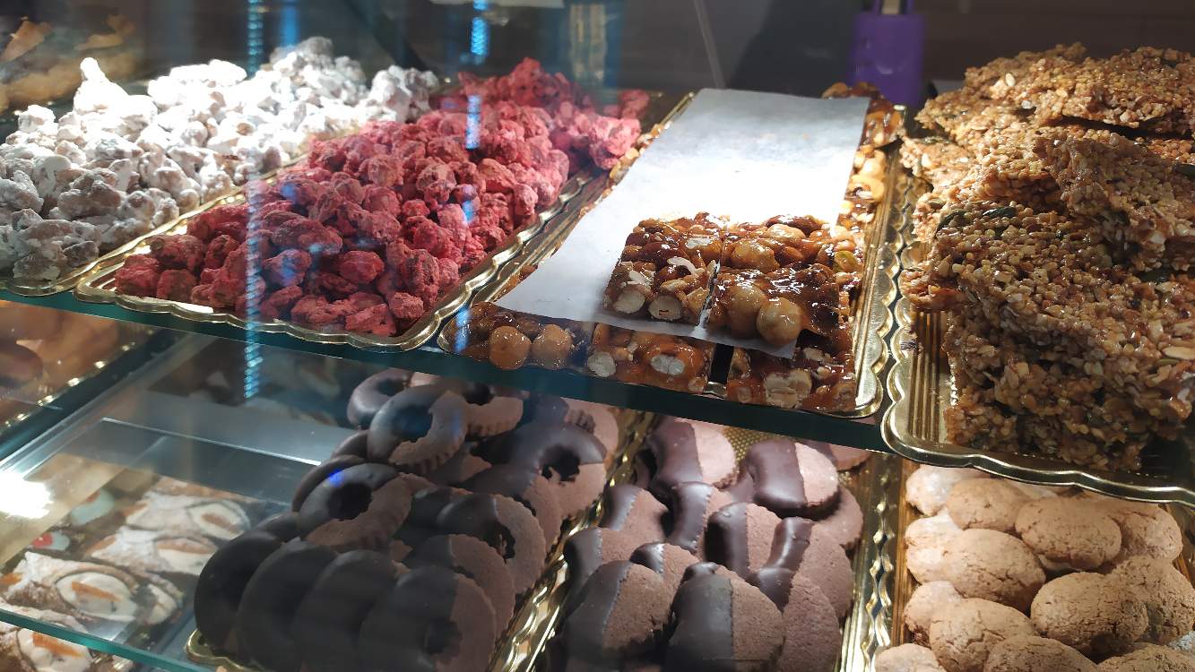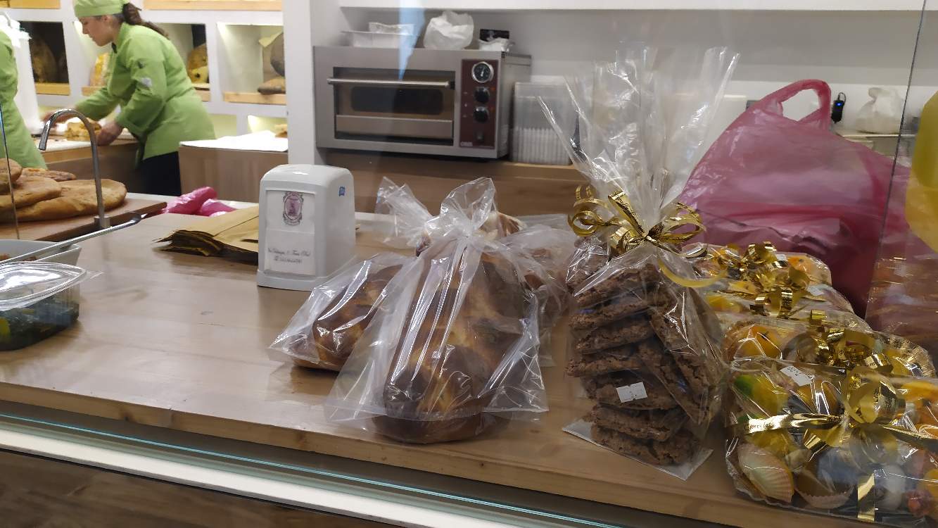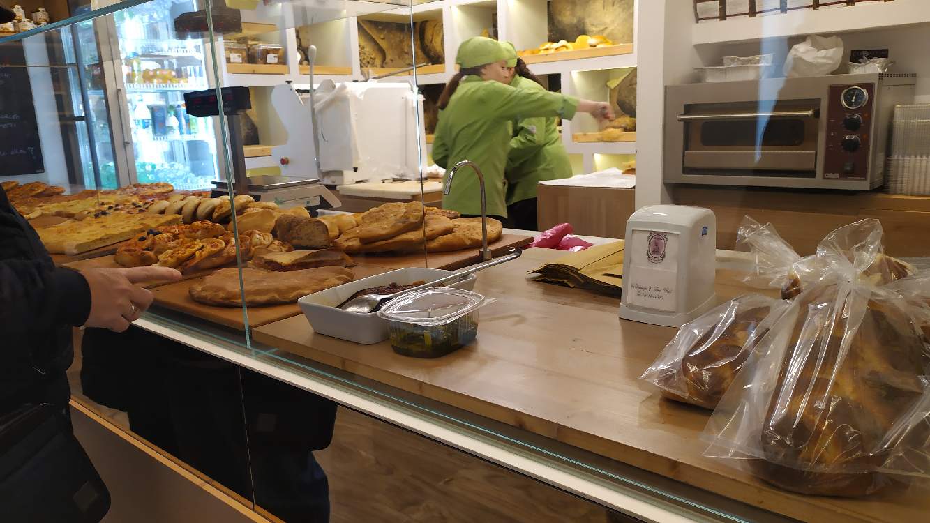 A long counter of sweets and chocolate in all shapes and tastes welcomes customers. The colors and scents stun the senses and sight. The bakery is assorted in many varieties of bread, produced with various flours such as cereals or wholemeal.