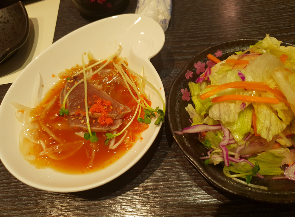 뒤이어 나온 샐러드와 참치양파절임? 입니다. 이름은 잘 모르겠지만 약간 비린맛이 있긴 하더군요.