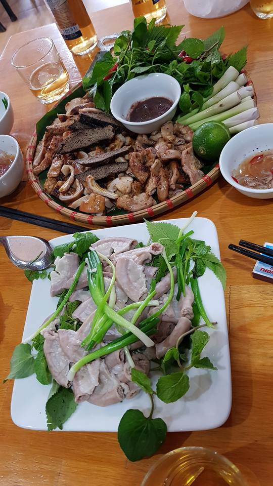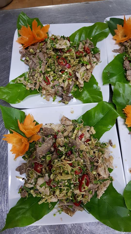 Around the opposite, the chicken is put on the tray, the feeling like family meals, cozy between nature. The interesting thing is that the owner of the restaurant helps cut the roasted chicken, the rest of the restaurant will let the customer to tear the chicken itself, according to the owner of the restaurant "must do so to feel good taste." Tucked yellow pieces of chicken, delicious, customers like us to quickly enjoy the delicious after the waiting minutes. Now feel the sweetness in each fiber, the bitter taste of worm leaves balance the fat and sweet of honey, sour sour, spicy spicy lemon pepper, the fragrance of wormwood leaves, grilled lemon and lime leaves on the nose ... There is a feeling like "tan" taste at the tip of the tongue.