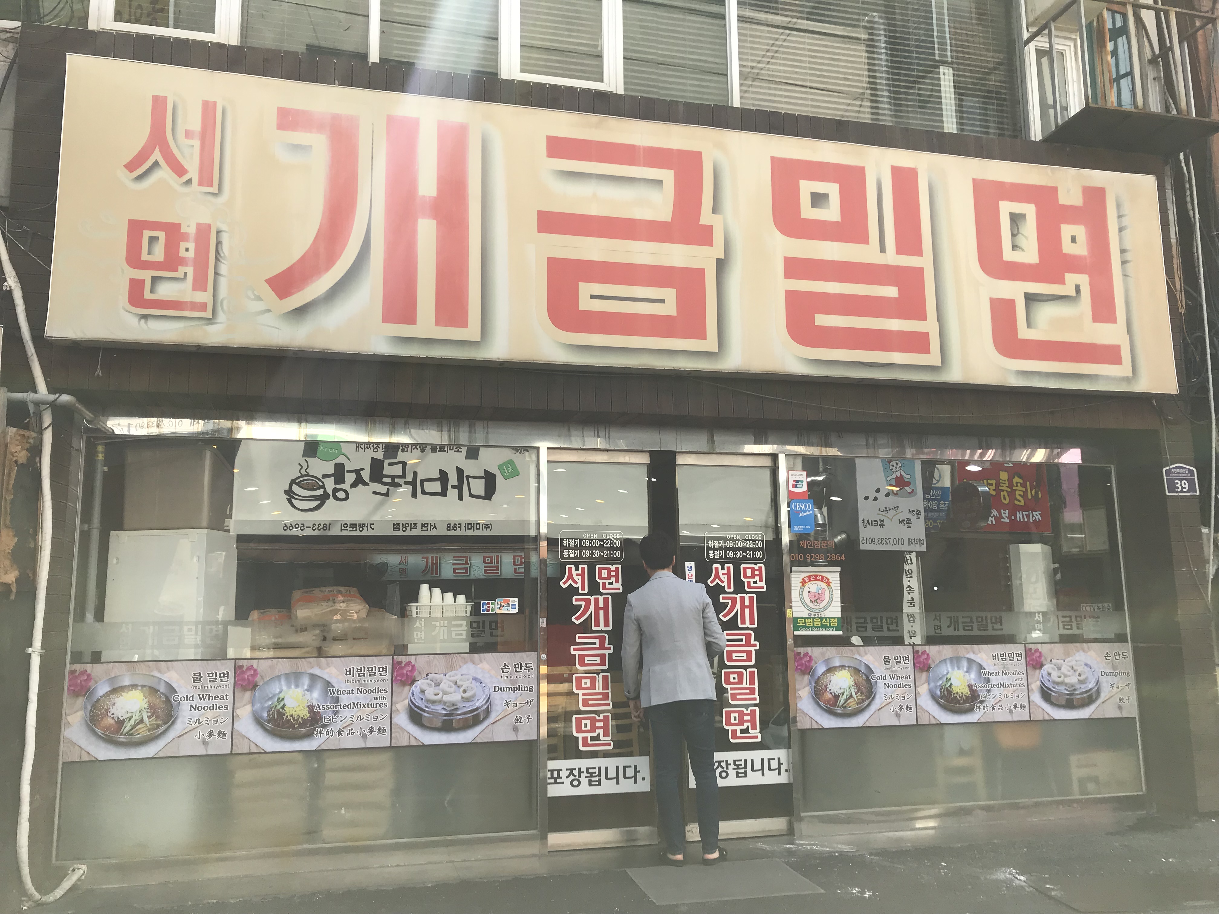 부산 서면에 위치한 개금밀면입니다. 개금밀면은 원래 개금에 위치한 밀면 맛집인데, 서면에 있는 서면개금밀면과는 다른 곳으로 보입니다. 도착 후 물밀면 비빔밀면 만두를 주문했습니다.