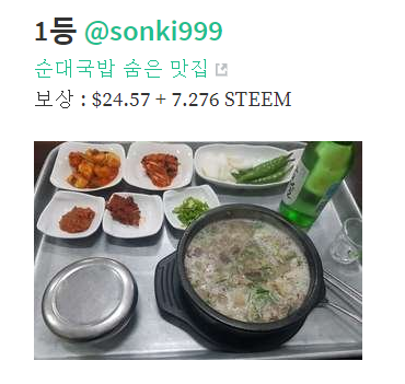 이번 회차 상금으로 받은 스팀은 7.276 steem 입니다