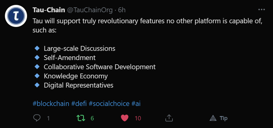 https://twitter.com/TauChainOrg/status/1385896413855424512?s=20