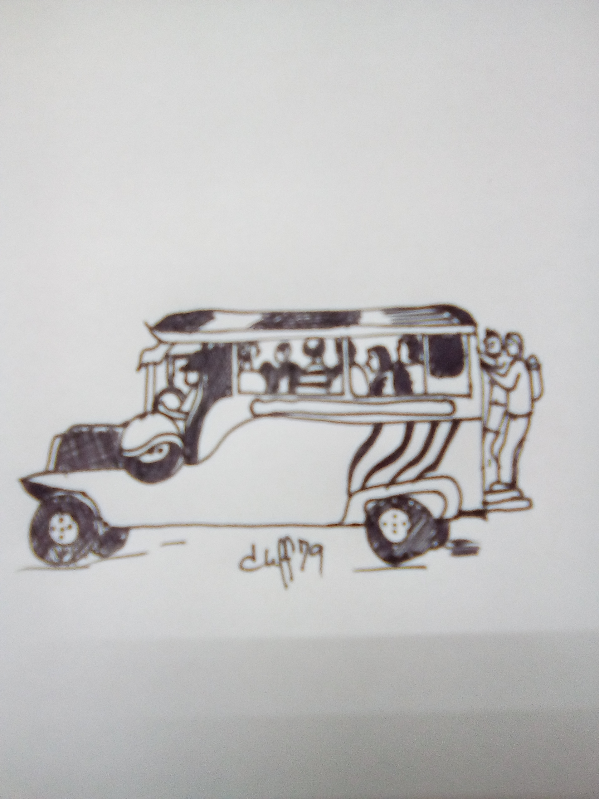 Suddenly a Jeepney comes but i observe that it was too slow to move.i lay my hand to stop the Jeepney. And when it was stop i take a ride, when i enter in the Jeepney's Door i observe the flooring it was full of Mud and also when i look on all of the passengers feet was full of mud, all of them was sleeping except of the Baby,