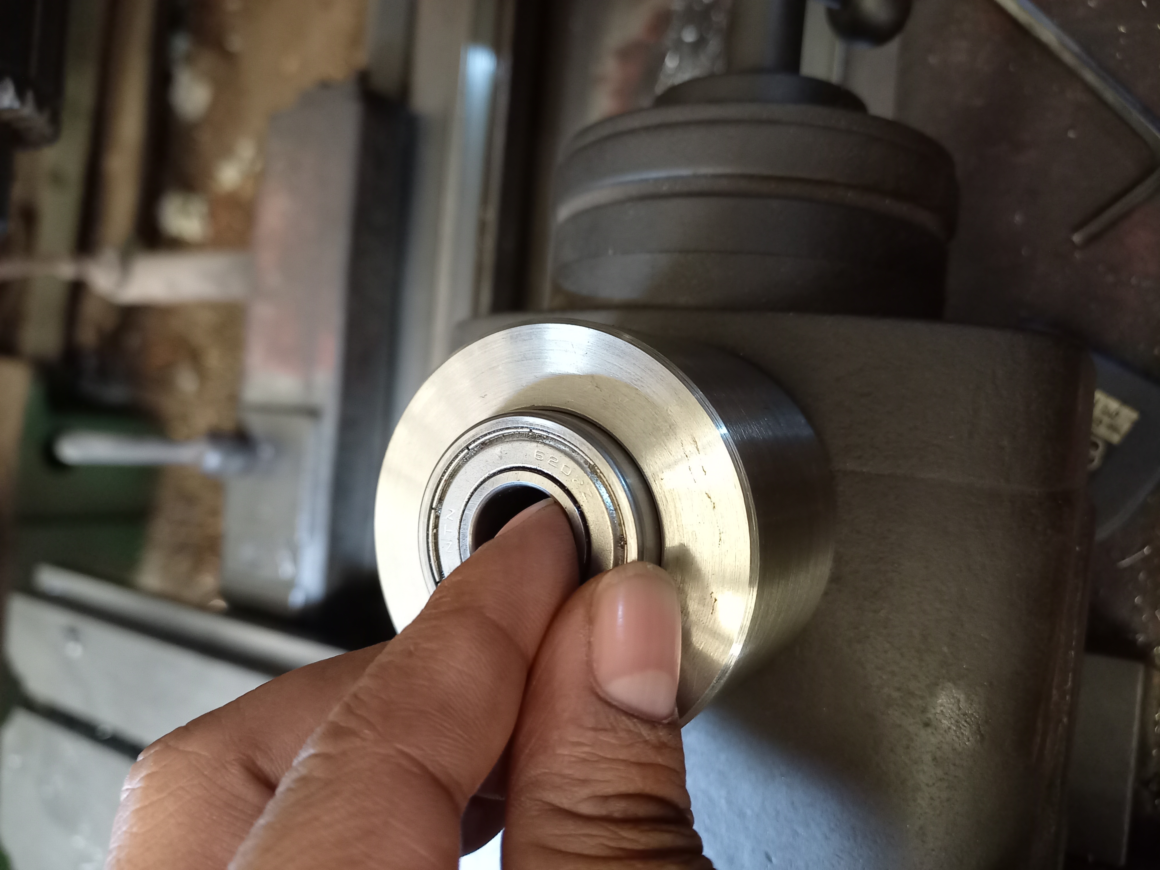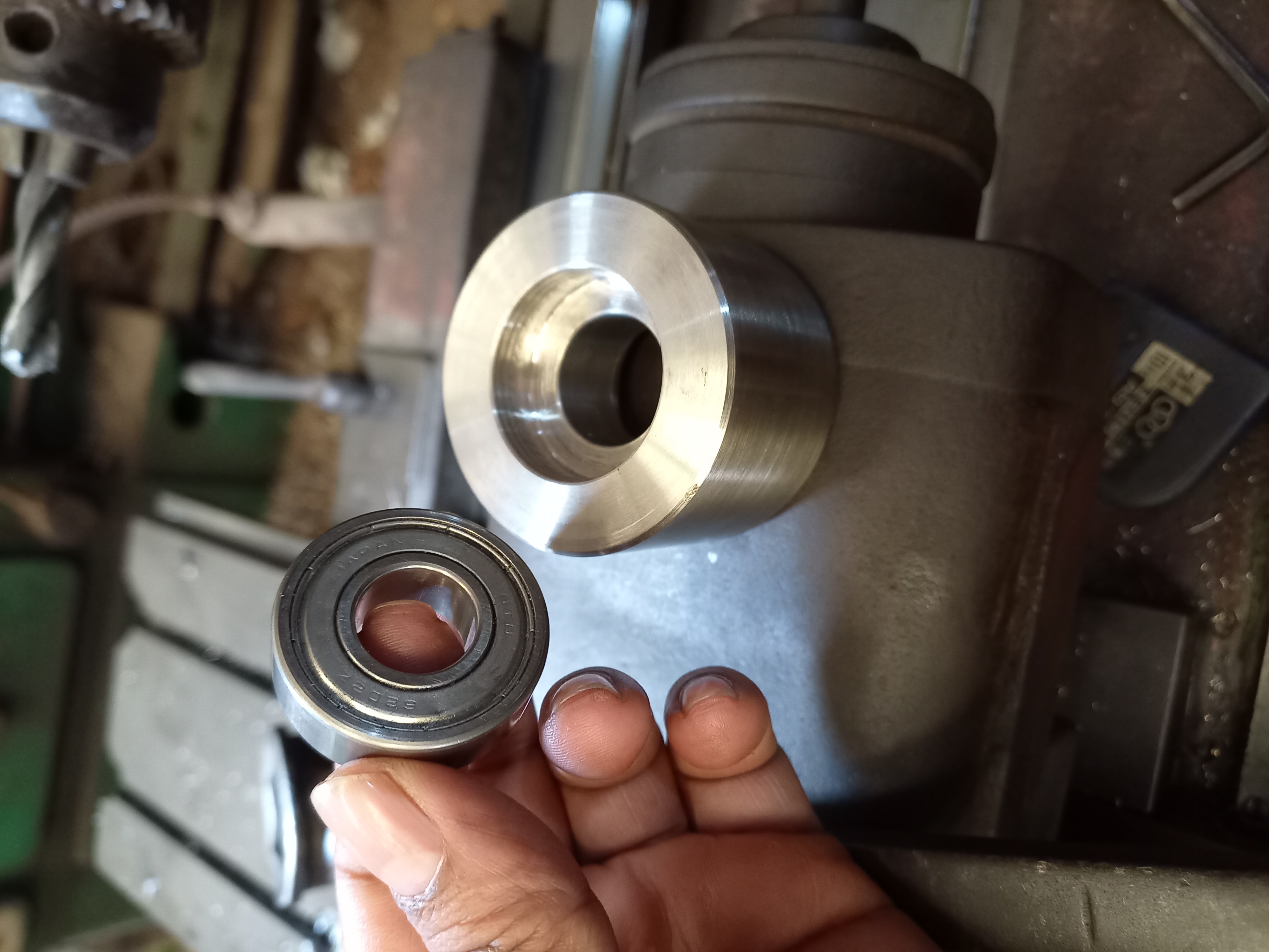 বেয়ারিং সাইজ টা ফিনিশিং হয়ে গেল। আমি এখন লাগিয়ে চেক করে নিচ্ছি। বেয়ারিং সাইজ টা জাম করা যাবে না এবং লুজ হতে পারবে না অর্থাৎ একেবারে আঠা আঠা থাকতে হবে জামটা।