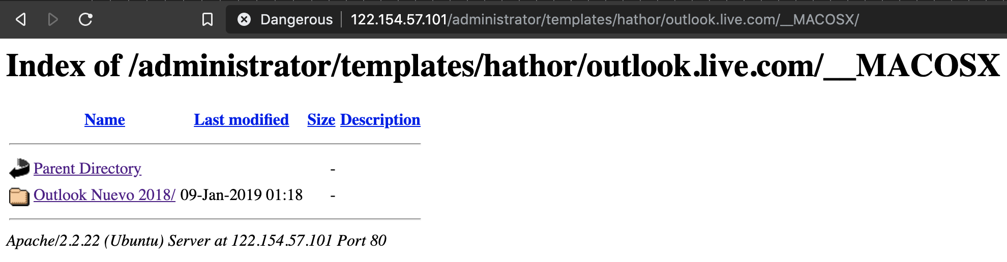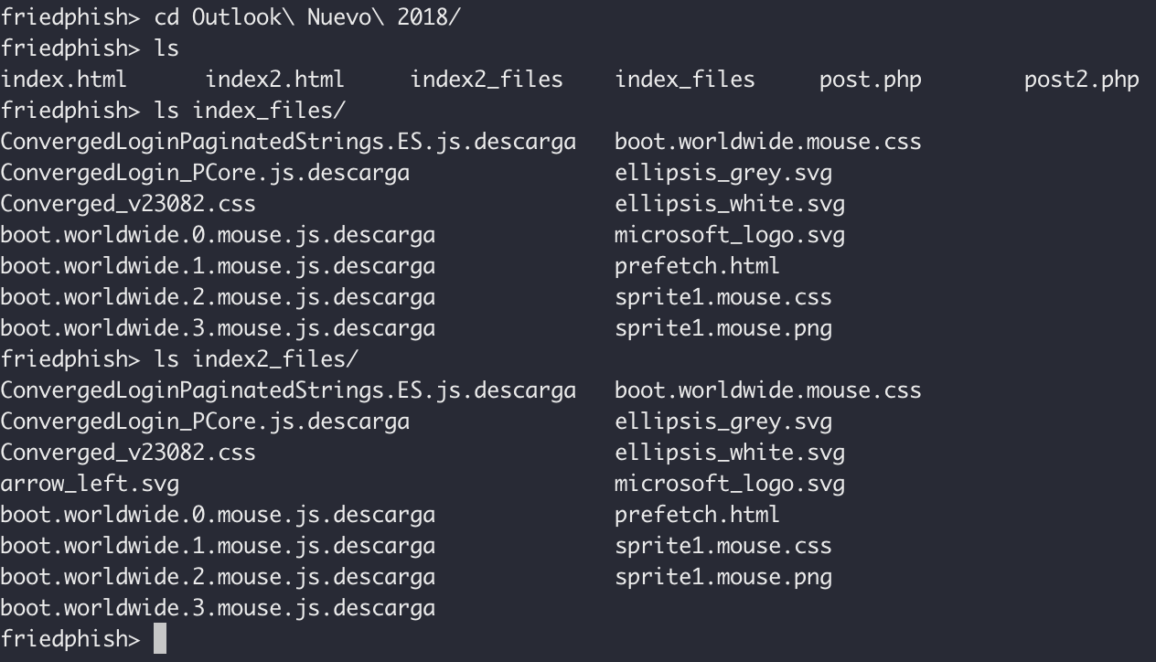 So here we have another phishing setup we discovered as part of the "Fried Phish" project, this time targeting Spanish speaking Outlook webmail users. This one is rather crude, but the way we used to dump the panels source code this time around was quite interesting, as it told us something amusing about the threat actor involved.