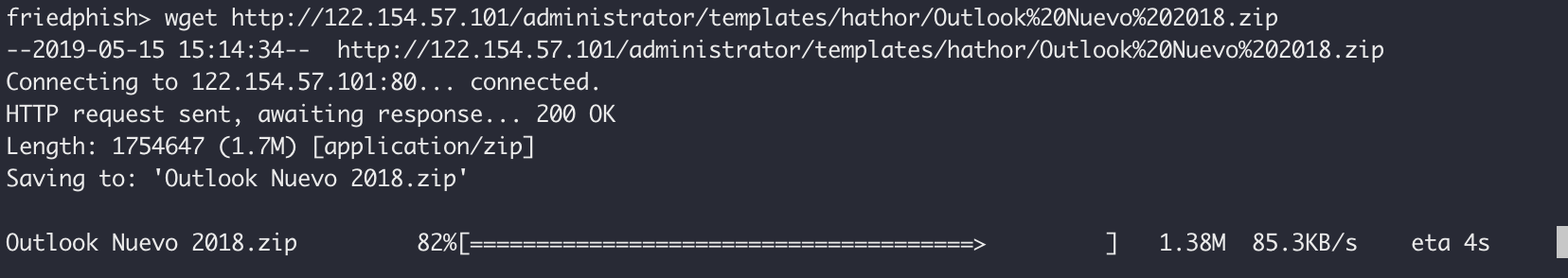 Now that we had a basename for the ZIP file, we simply used "wget" to try download it. Our suspicions were confirmed! This also told us that the threat actor who created this package of nasty is an Apple OSX user.