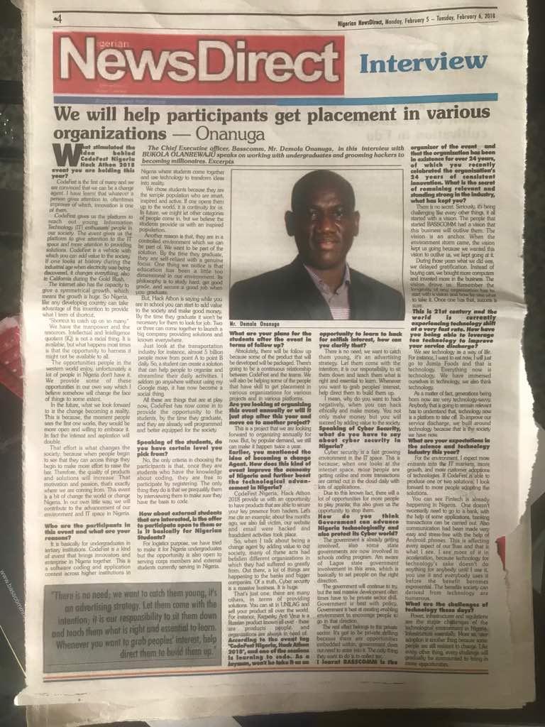 An interview was done with Chief Executive Officer Mr Demola Onanuga. And here are the great things he said and the plans he have for the great people in codefest Nigeria.