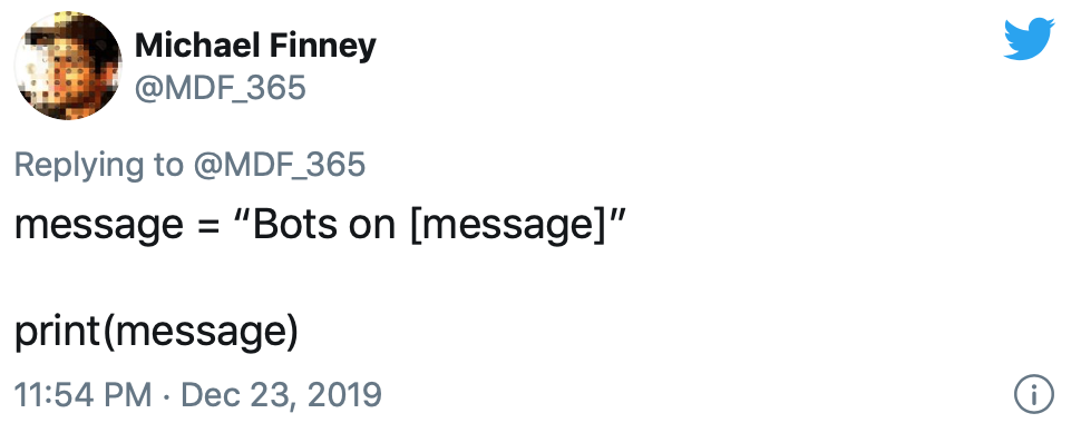The Twitter API is a playground, if you’re inclined toward social networks and information. Building a basic bot to interact with the platform via the backend functionality is a fun way to learn some rudimentary capabilities. There are a few different ways to go about triggering bots and timeline activities but I’m going to give examples that rely on the Python language to make things happen.