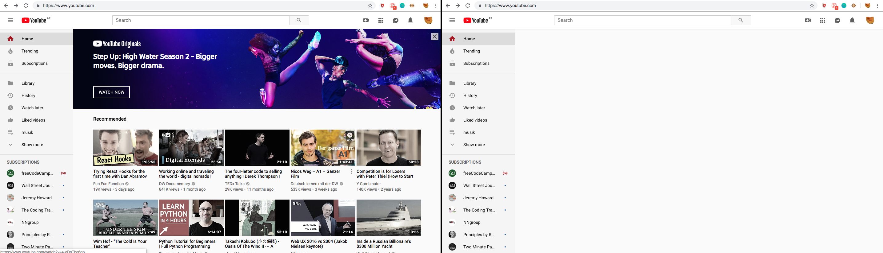 If by any chance you would like to see what Youtube algorithm wants to recommend you to watch next – I admit it might be a unique chance which does not repeat in exactly the same way again (FOMO anyone?) – you can view them as used to by clicking on extension icon and click the button “Toggle recos”. They will pop back.