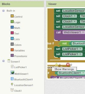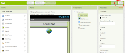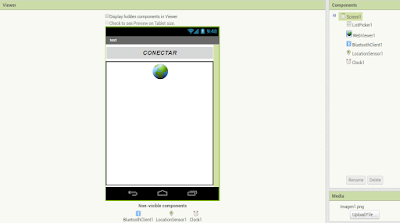 We are going to add a ListPicker, WebViewer, Bluetooth Client, Clock and a Location Sensor. Your components and preview have to look like the next screenshot.