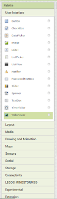 Once you're logged in, go to start new project. Now that you are in the window of creation you could see a Palette where sensors, buttons and other functions can be added to our app.