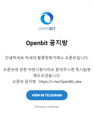 오픈빗 텔레그램 공지방 : https://t.me/OpenBit_dex (announcement)
