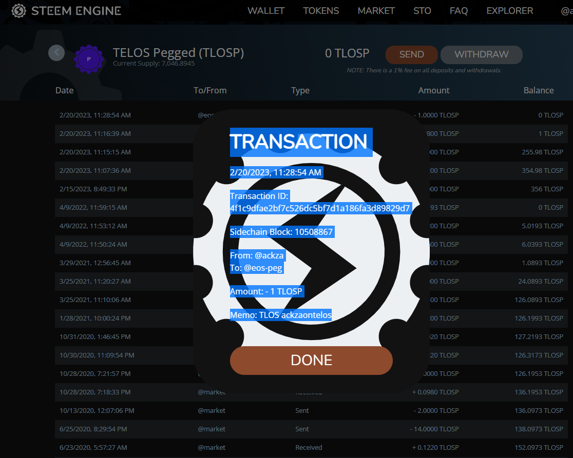 Get those TLOSP you were airdropped out of there! but you should still always be able to manually send the TLOSP steem token to eos-peg memo: TLOS yourtelosaccount