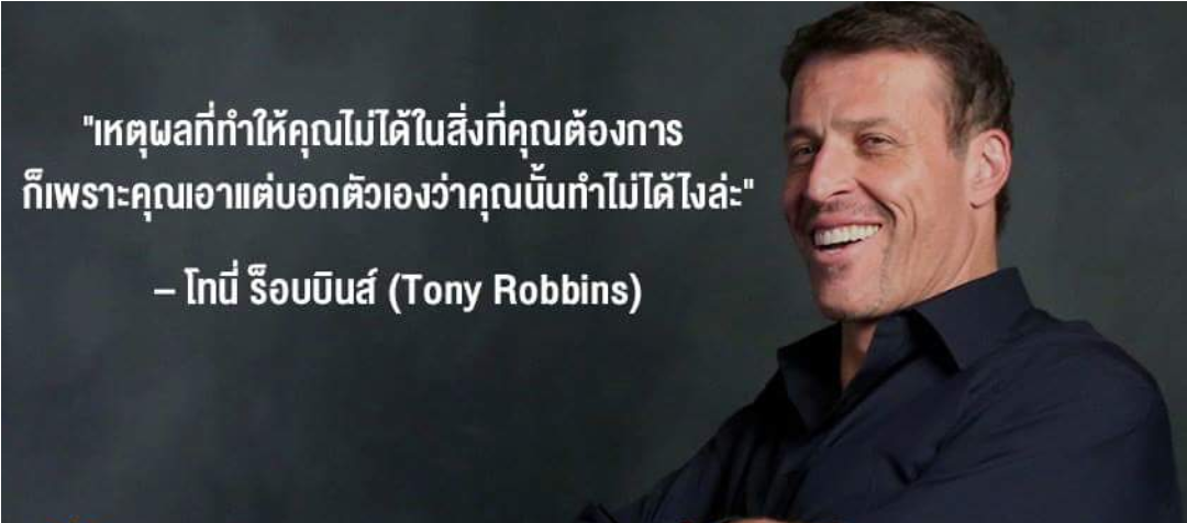 "เหตุผลที่ทำให้คุณไม่ได้ในสิ่งที่คุณต้องการ ก็เพราะคุณเอาแต่บอกตัวเองว่าคุณนั้นทำไม่ได้ไงล่ะ" – โทนี่ ร็อบบินส์ (Tony Robbins)