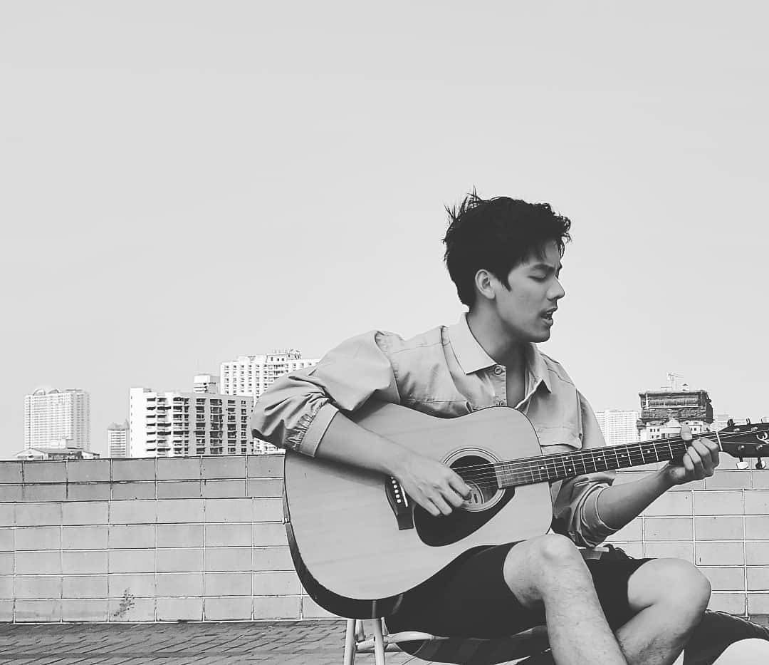 With Guitar (he has really captivating voice when he sings with his guitar) <3