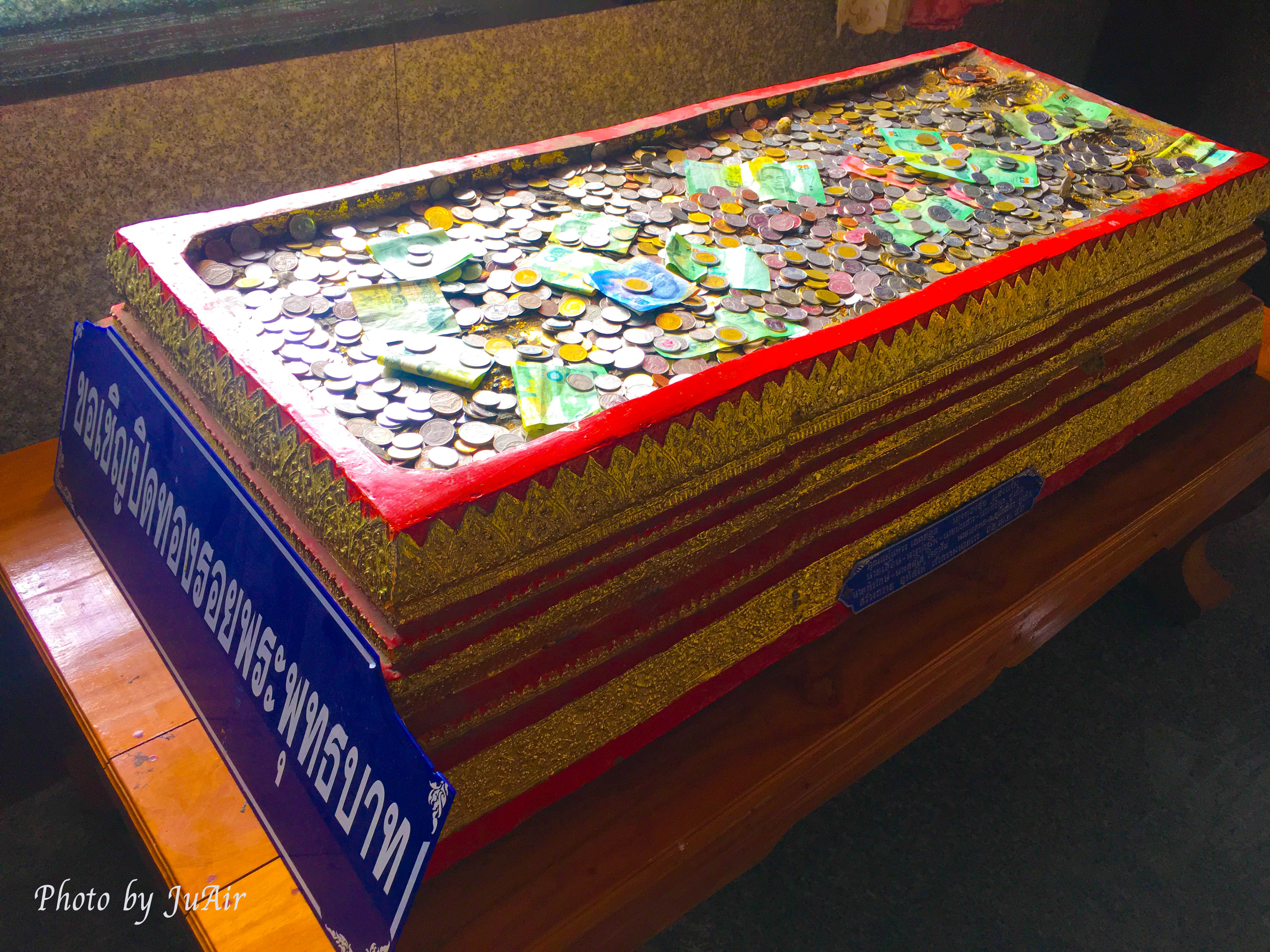 - ภายในวิหารจะมีรอยพระพุทธบาทจำลองให้กราบไหว้ และวัตถุมงคลให้เช่าด้วยค่ะ