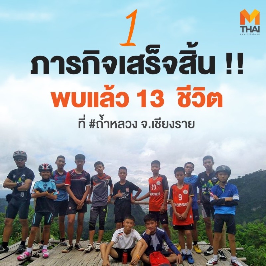 ล่าสุด เวลา 22.30 น. ผู้ว่าราชการจังหวัดเชียงรายได้แถลงข่าวสำคัญค่ะ ว่าณ เวลานี้ ได้พบน้องๆ ทั้ง 13 คนแล้วค่ะ!!!!!! ดีใจมากกกกกกก ก.ล้านตัว น้องๆทั้ง 13 คน ปลอดภัยดีค่ะ แต่อย่างไรก็ตามตอนนี้ยังไม่สามารถพาน้องๆ ออกมาได้ค่ะ เนื่องจากข้างในถ้ำยังมีระดับน้ำที่สูงค่ะ