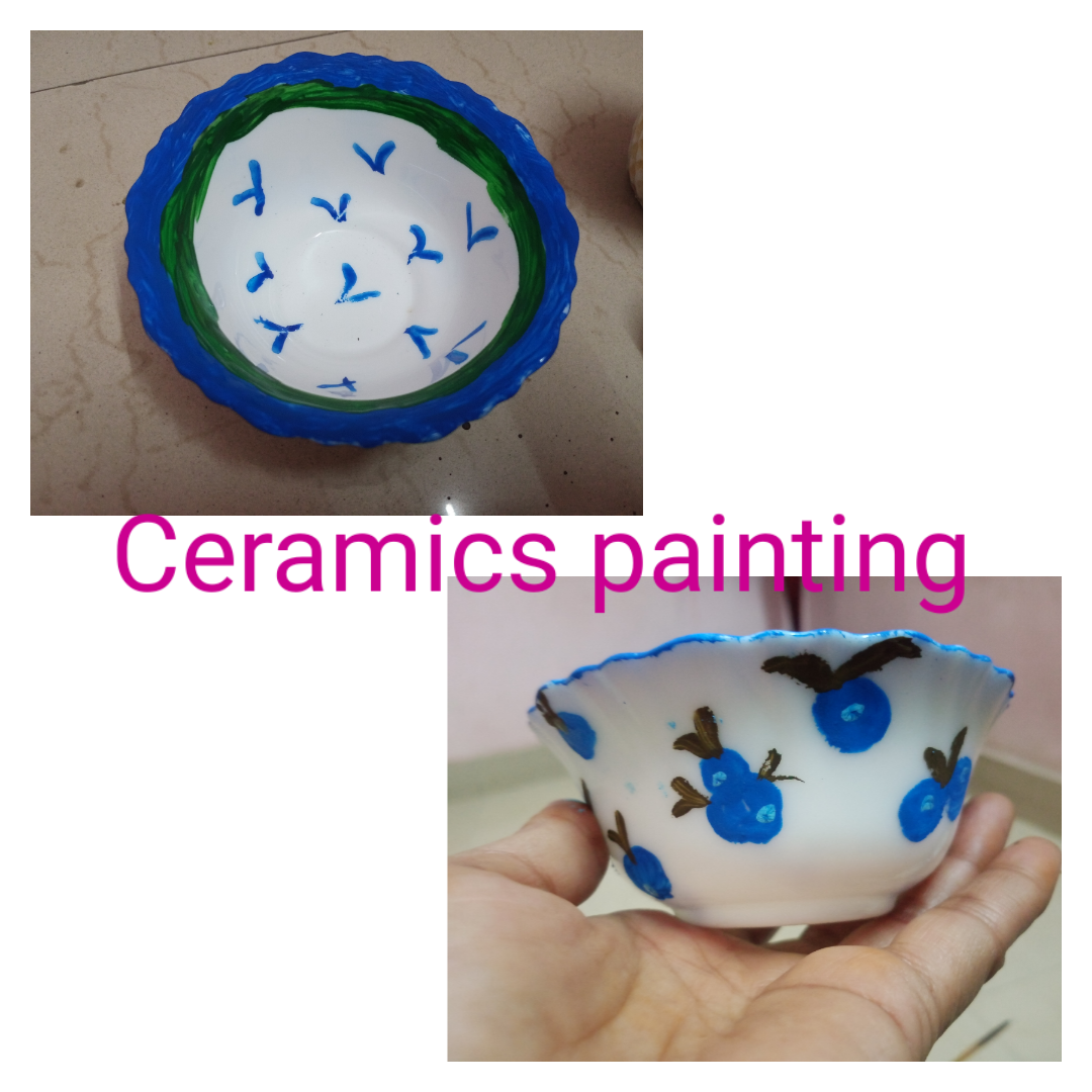 Share with us ceramics painting,create any design according to your choice on ceramics pot (Mug ,cup ,glass, plate any decorative piece)it should be ceramic pot... share step by step procedure with images |
