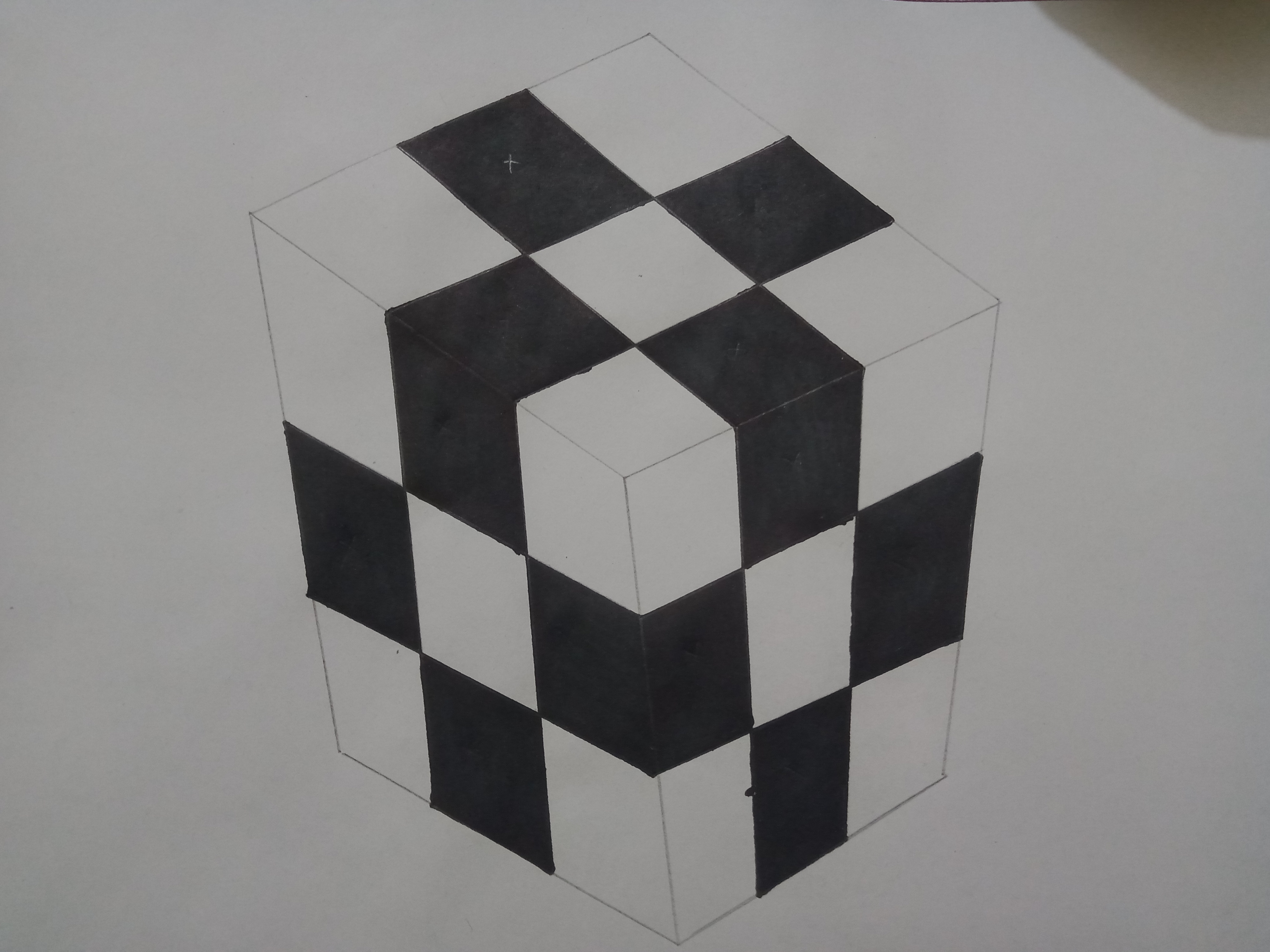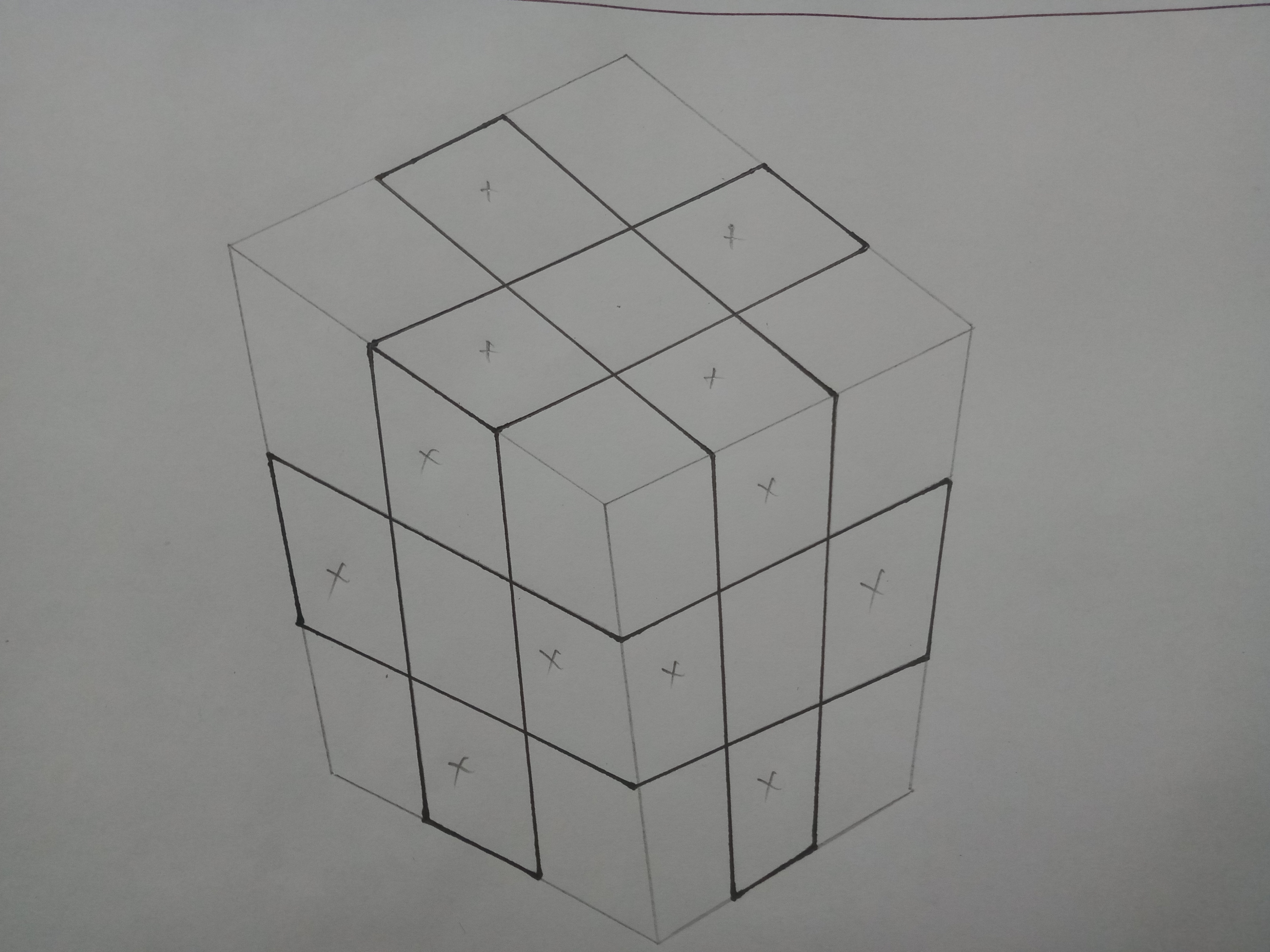Now select the cells of the cube that need to be painted black with a marker pen.