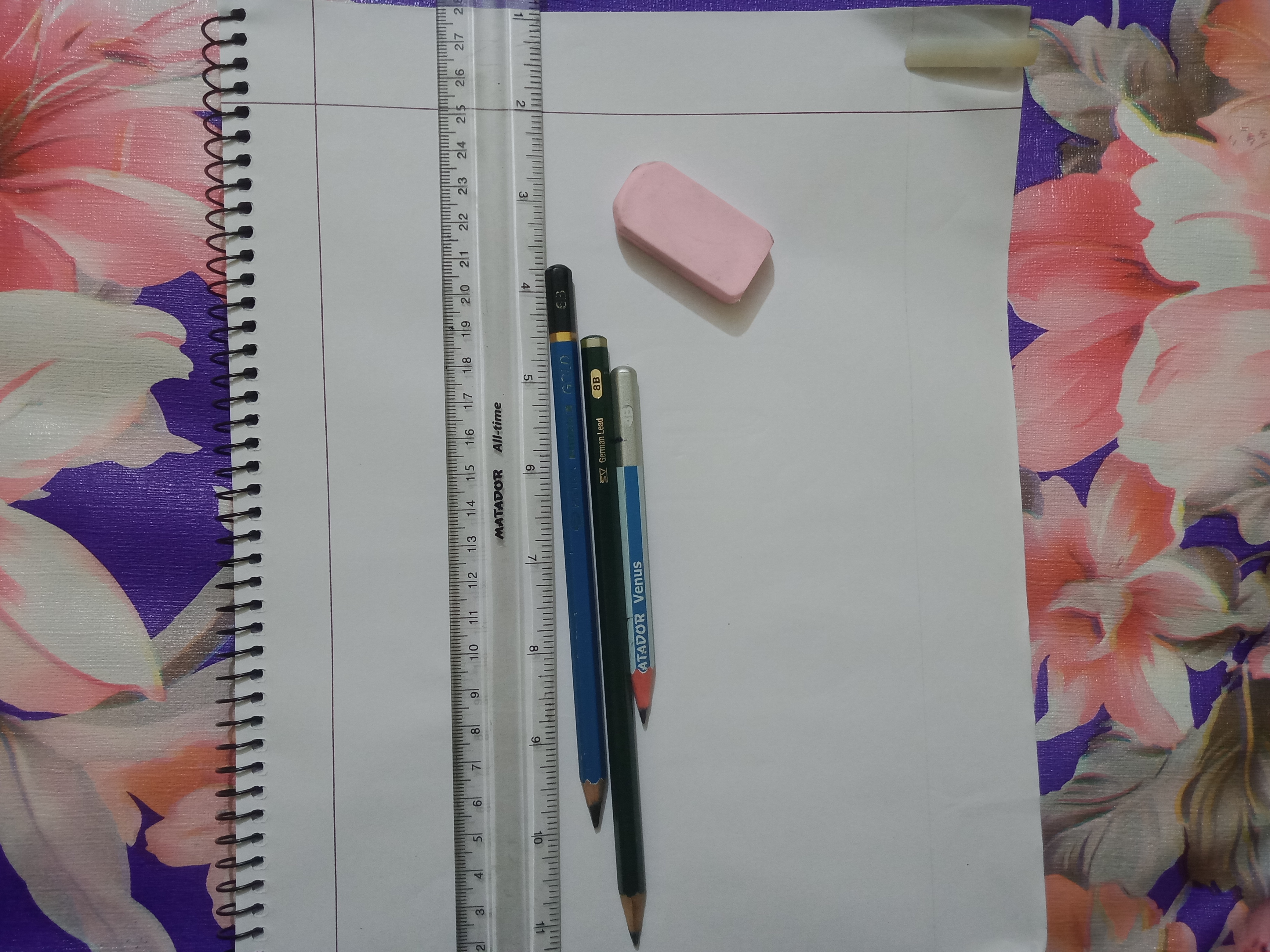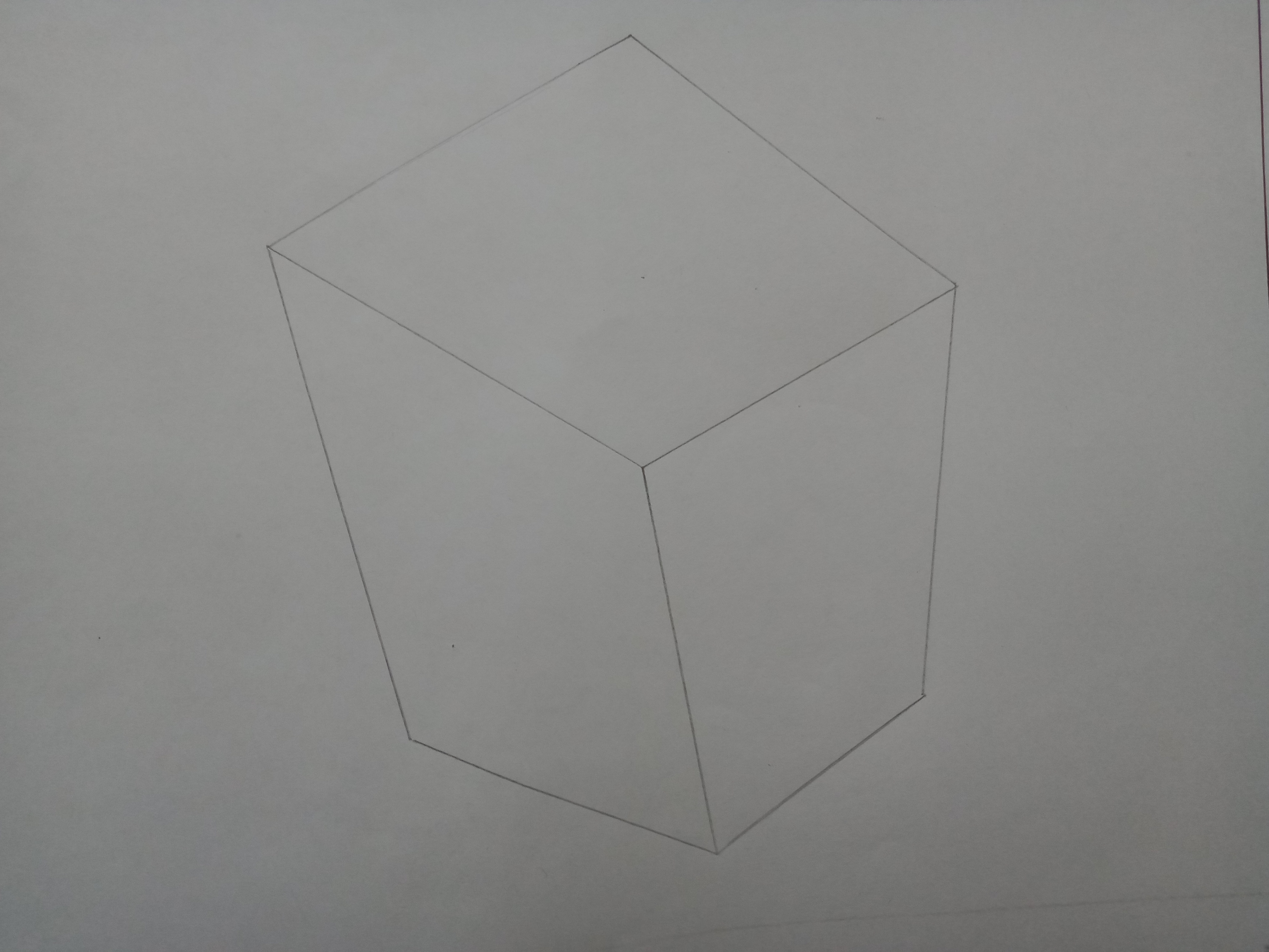To draw the 3D cube, I first cut three marks with a scale. Then join the dots together to form the cube. I used a 4B pencil here to draw the cube.