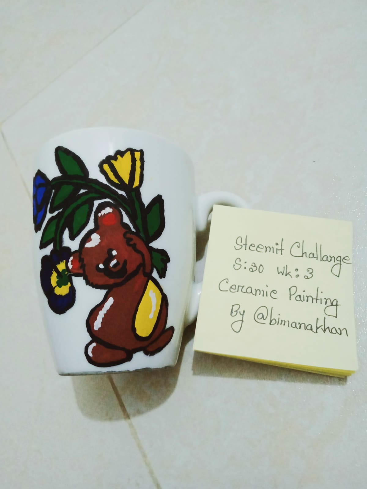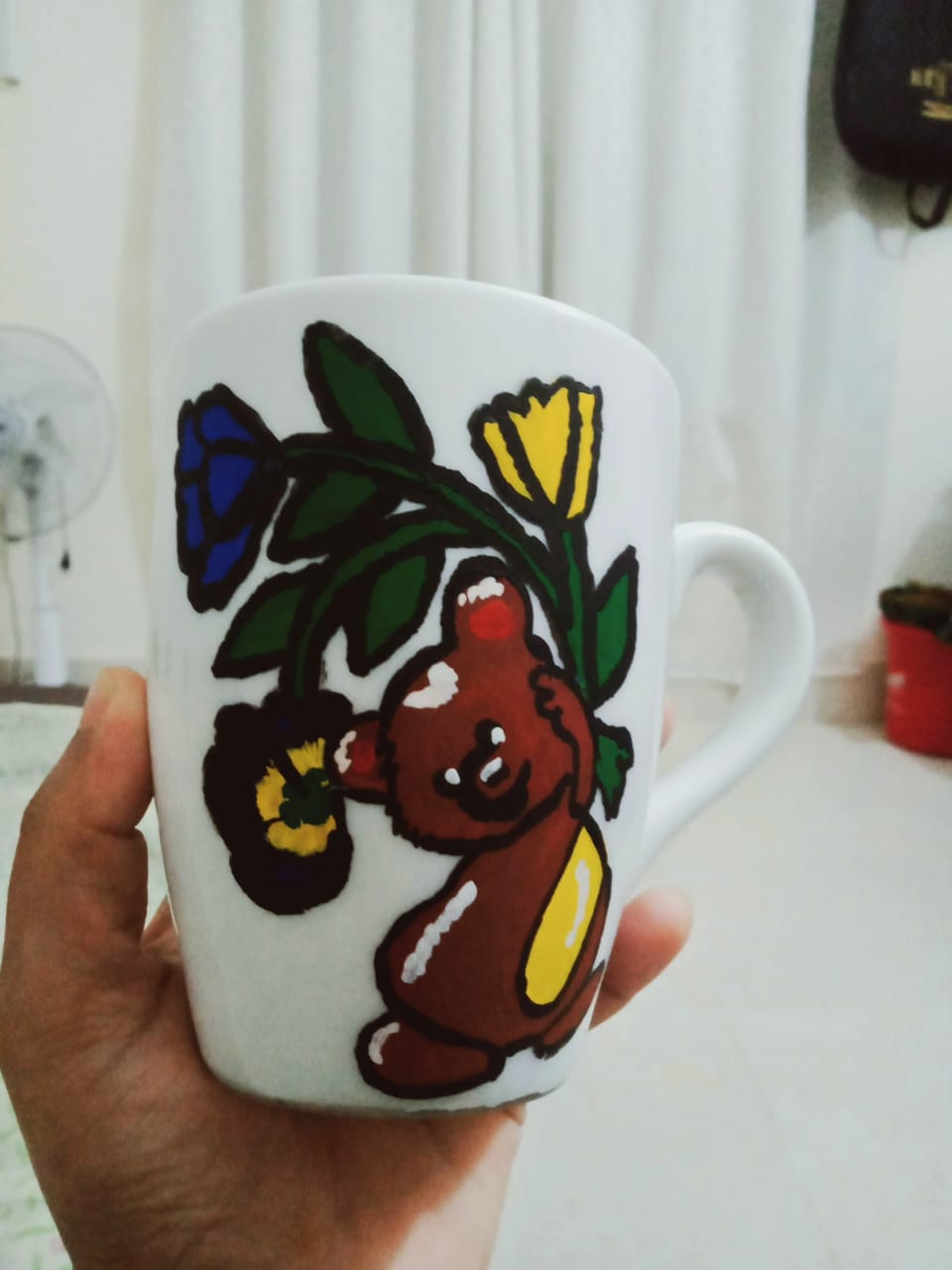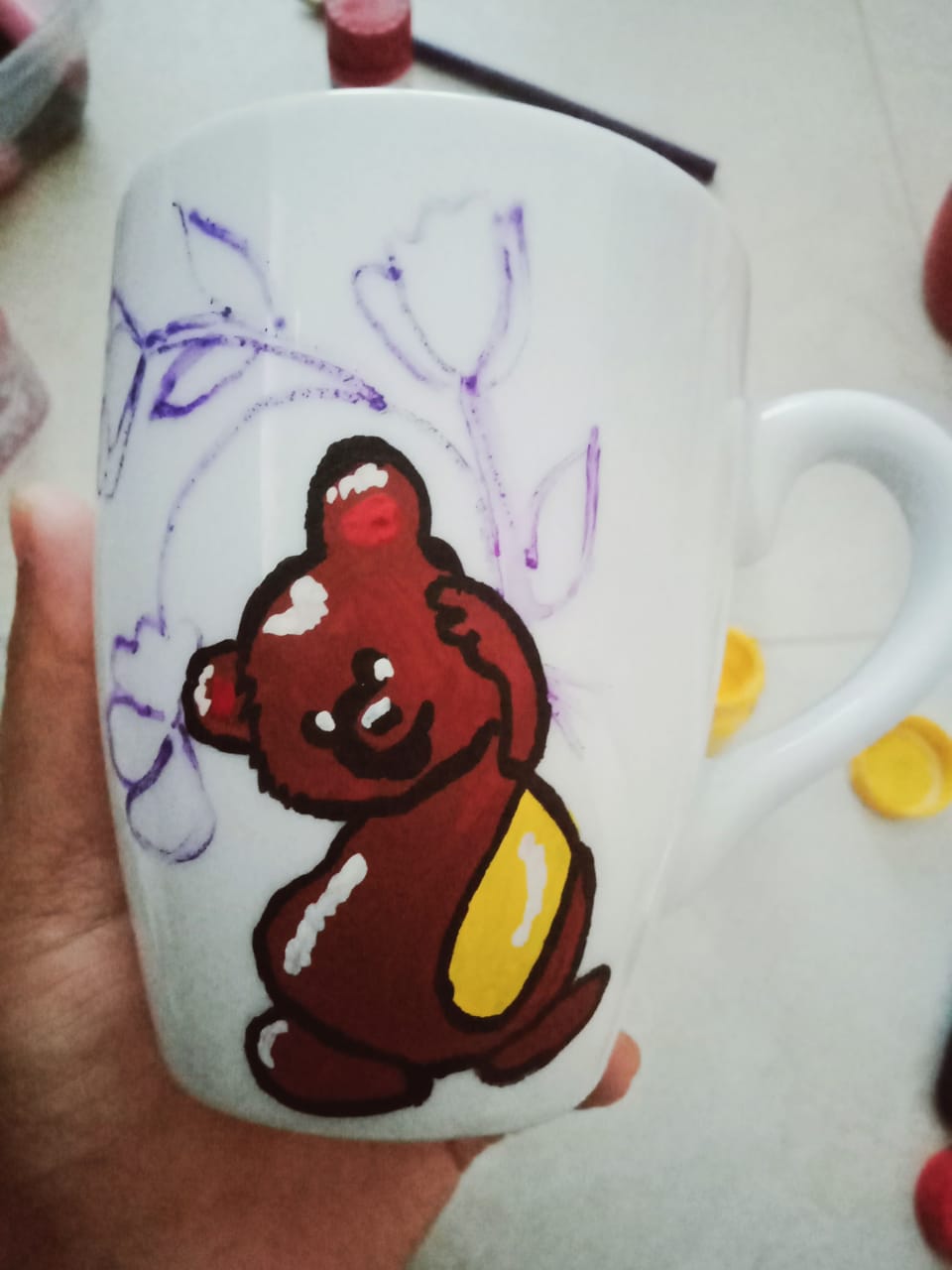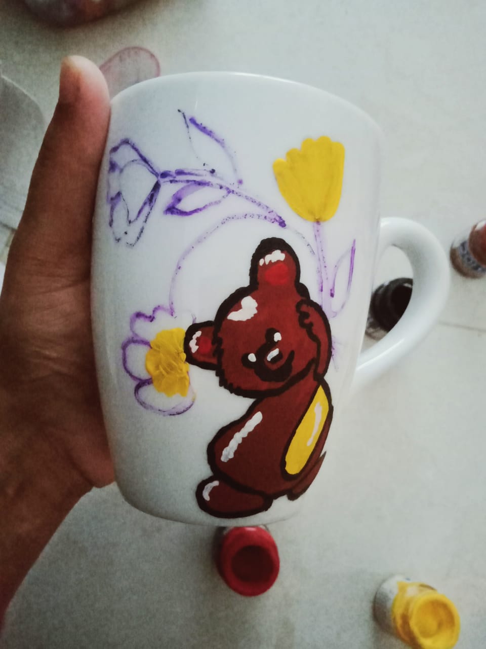The painting that I did today is a picture of a teddy bear on a ceramic mug and a picture of flowers. I was inspired by this picture from Google and decided to paint this picture. So without further ado, let's come to the main discussion.