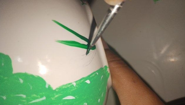 Pasa 4: Los cactus tienen espinas, así que empecé a colocarlas en los cactus; debo admitir que esta parte me encantó. Utilice un pincel fino.