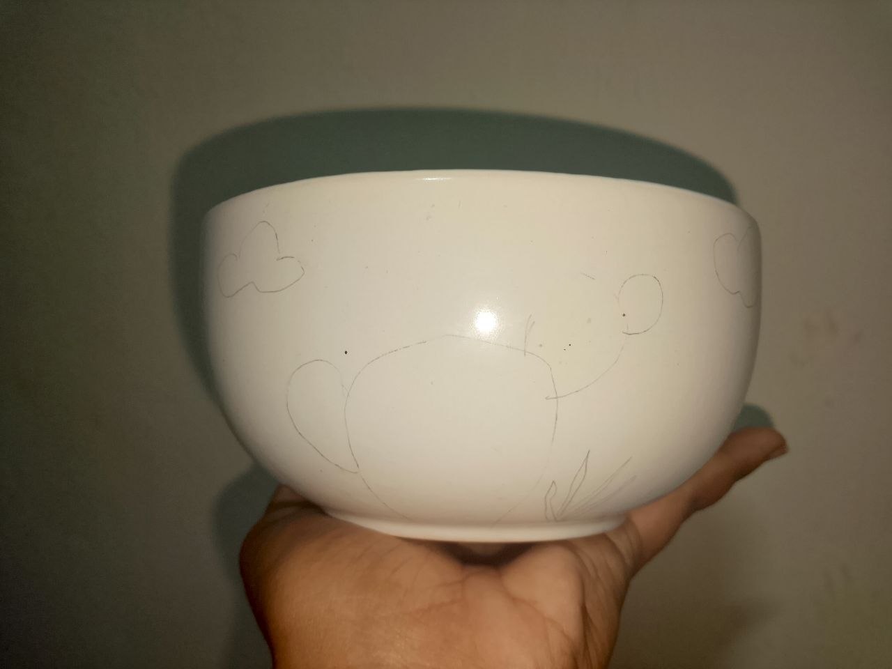 Pasa 7: También sombree las nubes con un poco de blanco. ¡Y así quedó este dibujo en porcelana!