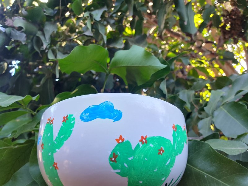 Estoy muy feliz con el resultado, ¡me encantó, ya que da un toque mexicano, le quedó muy lindo! ¡Además, contrasta con el mismo color del plato! ¡Me gustaría volver a intentar pintar en cerámica, ya que se puede personalizar y darle una nueva vida a nuestras cosas de cerámica! O para regalar algo lindo y especial!