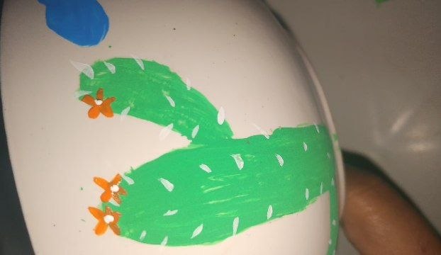 Pasa 2: ¡Después comencé pintando los cactus! Urilice 2 capas de pintura; ¡espere que se secara la primera capa para darle la segunda capa! En total fueron 5 cactus y 2 de diferentes especies, ya que si fueran de una sola especie, sería muy monótono.