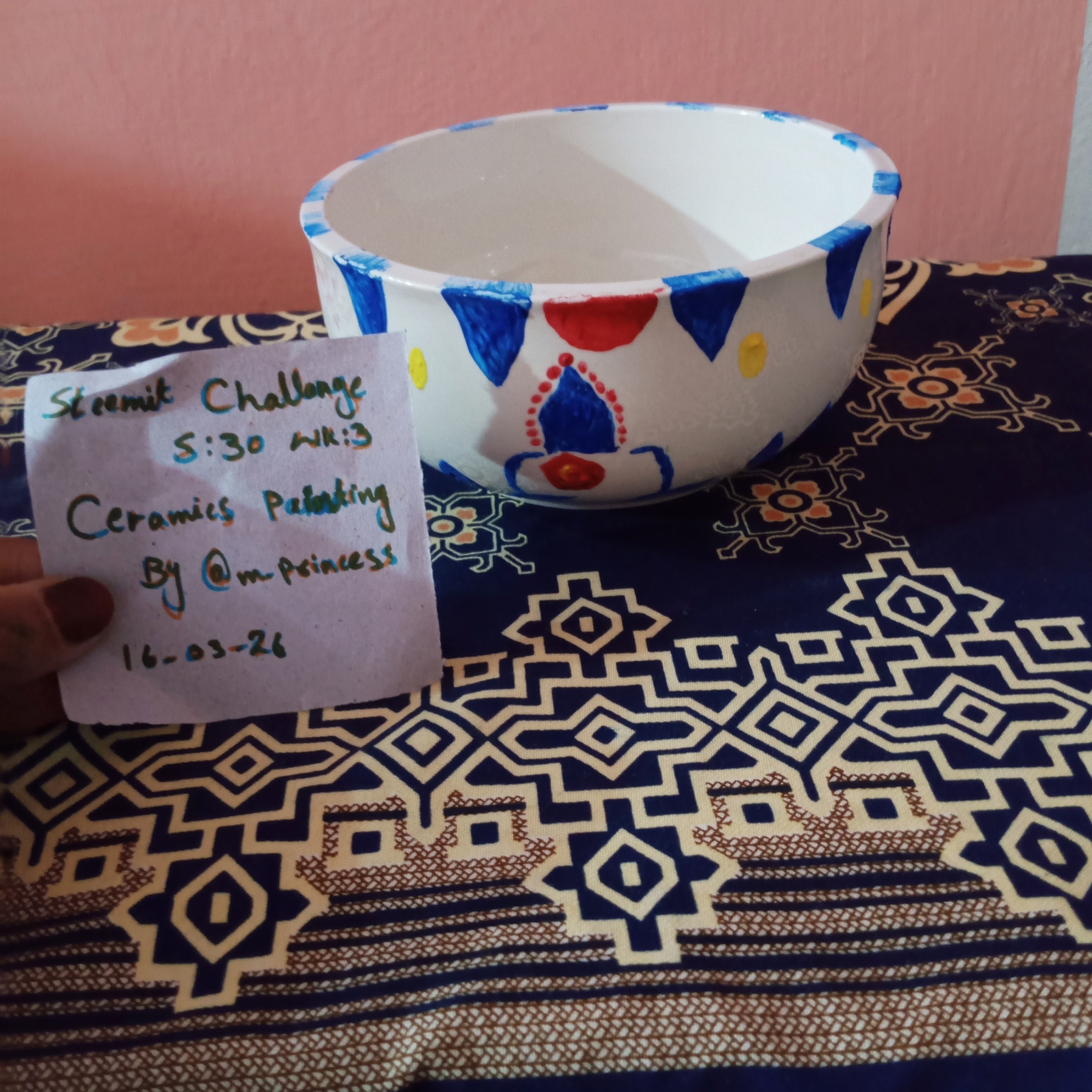 I had no previous experience painting ceramics before. This was a completely different painting for me. At first I wondered how I would make it because I had never painted on ceramics before. I did not know what colors to choose or how to start the design. However after joining your challenge and following the steps you outlined things started to get easier for me. I looked at the instructions carefully and tried to practice patiently. Gradually I understood how to hold the brush. How to apply the colors and how to create simple patterns on the ceramic surface. Even though it was my first time. I was able to complete the task in a good way. This experience helped me realize that painting ceramics is interesting and fun. I am sure that with more practice. I can improve my skills even more.