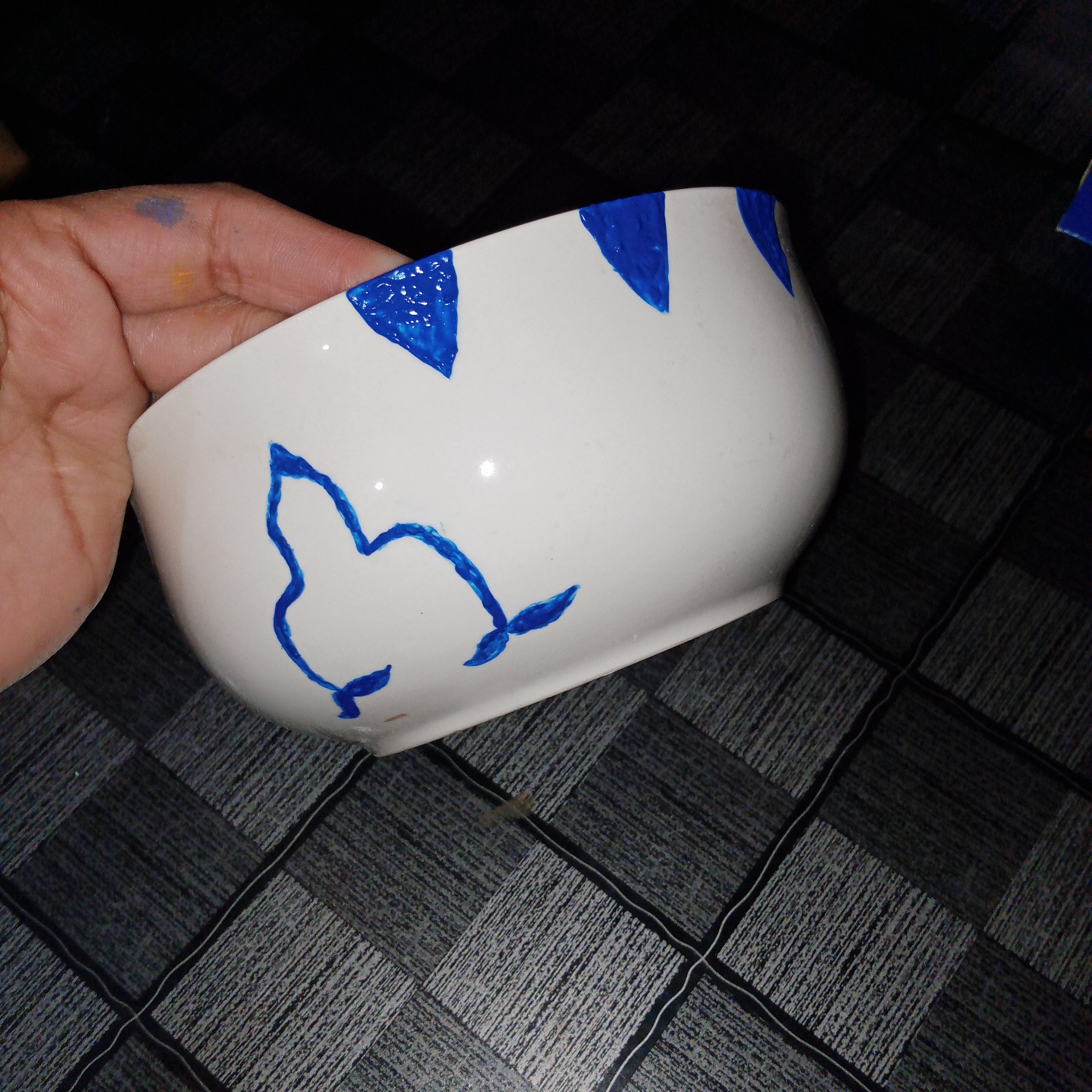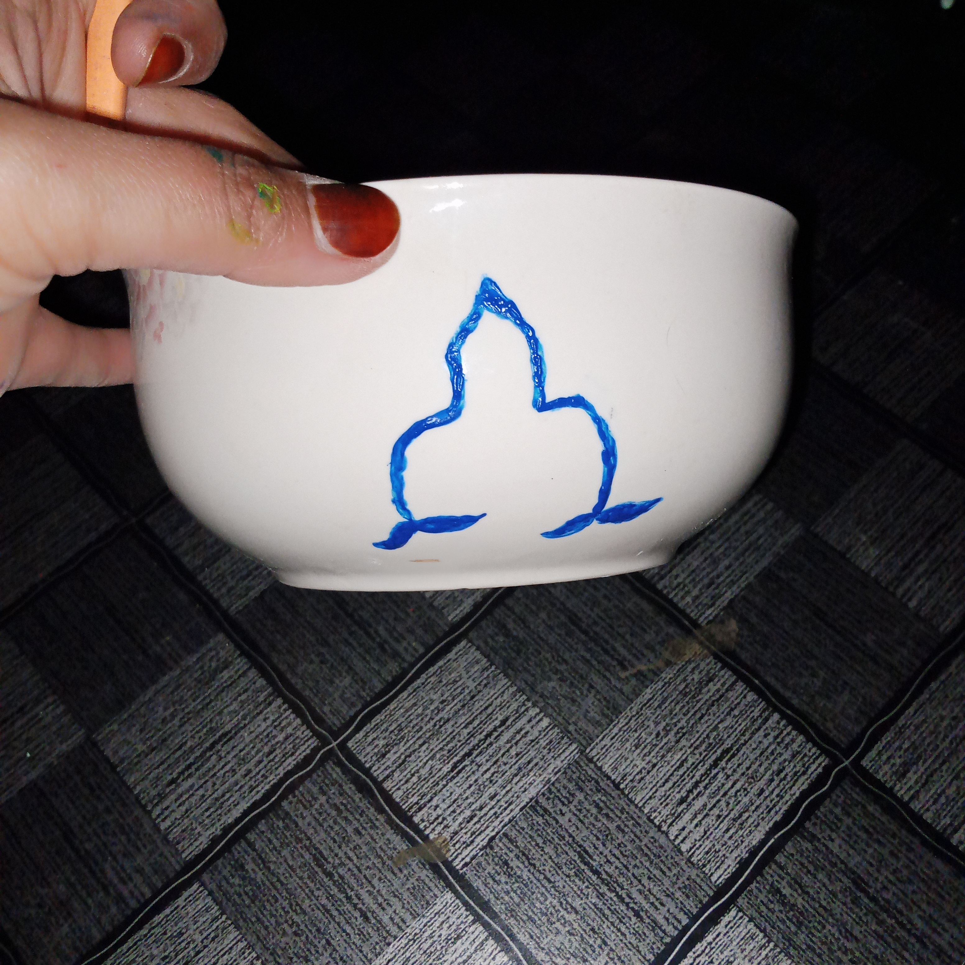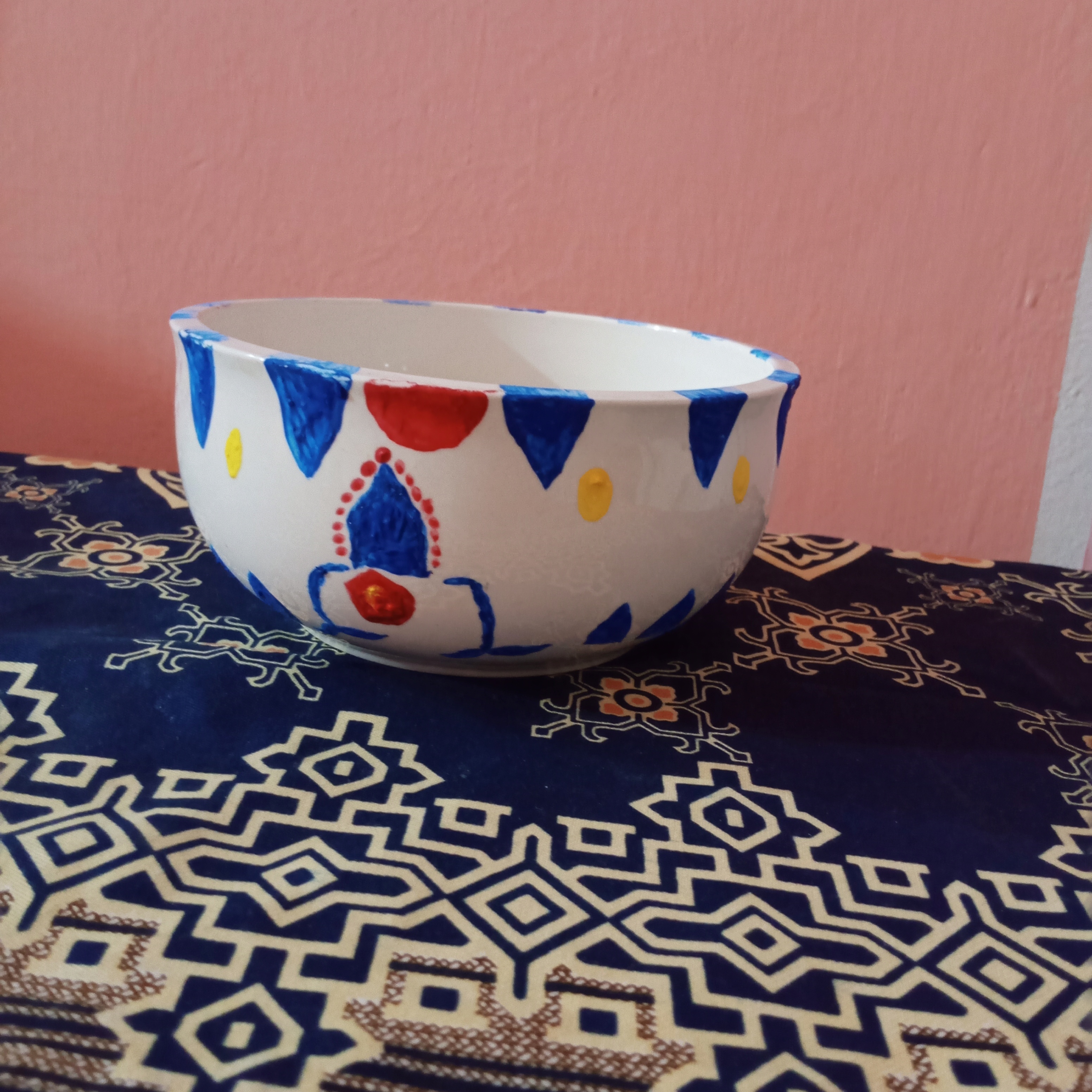 Guys I am not satisfied with the final result of my painting. I tried my best. And followed the steps that were taught in the challenge. But guys the result was not exactly what I expected. The bowl I used for the painting had a very simple design on the sides. Because of this I did not have much space or inspiration to create something more creative. I wanted to add more beautiful patterns and colors. But the shape and design of the bowl made it a little difficult for me. So I had to keep the painting simple. Although I worked carefully. I think I could have done better if the bowl had a better design.