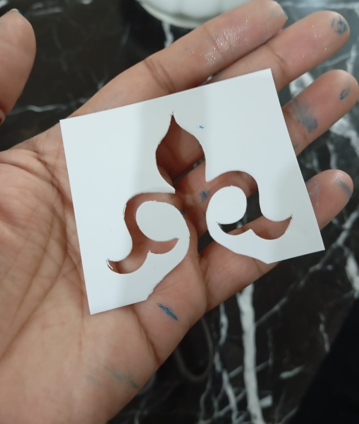 - I made a stencil for base of the pot for that I drew on cardsheet and cut it from sharp stencil.