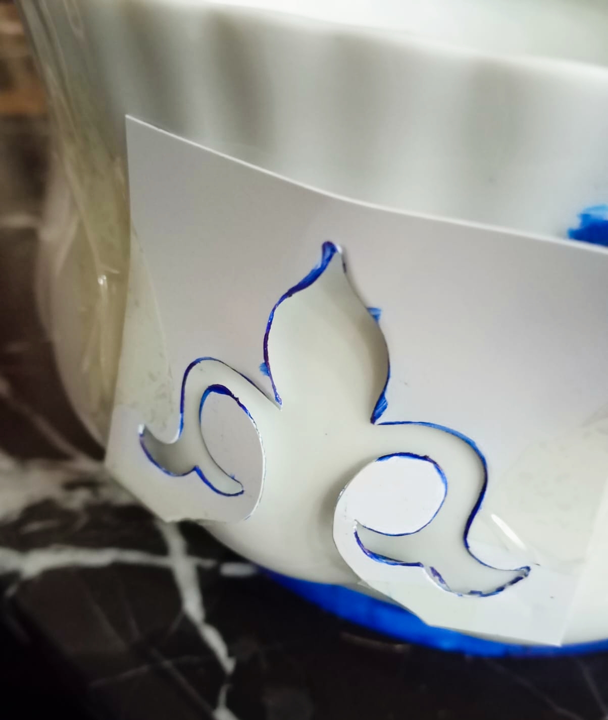 - I pasted the stencil by tape then painted blue colour and carefully removed...