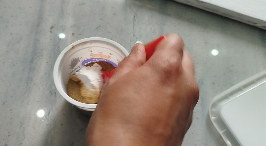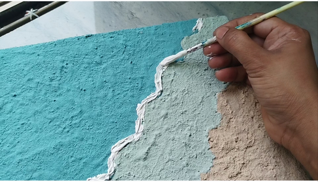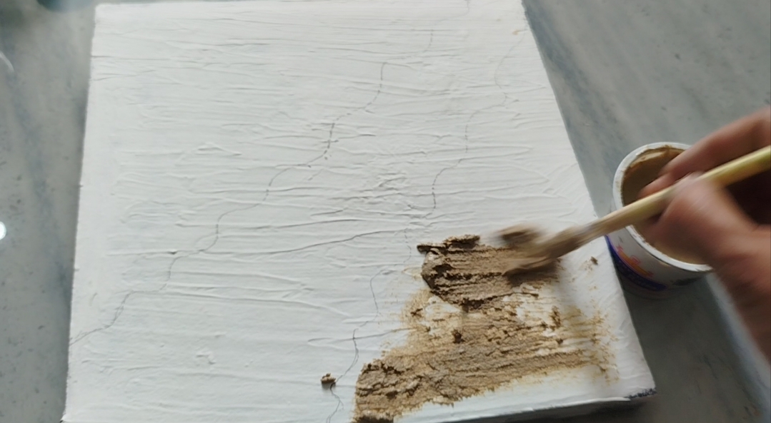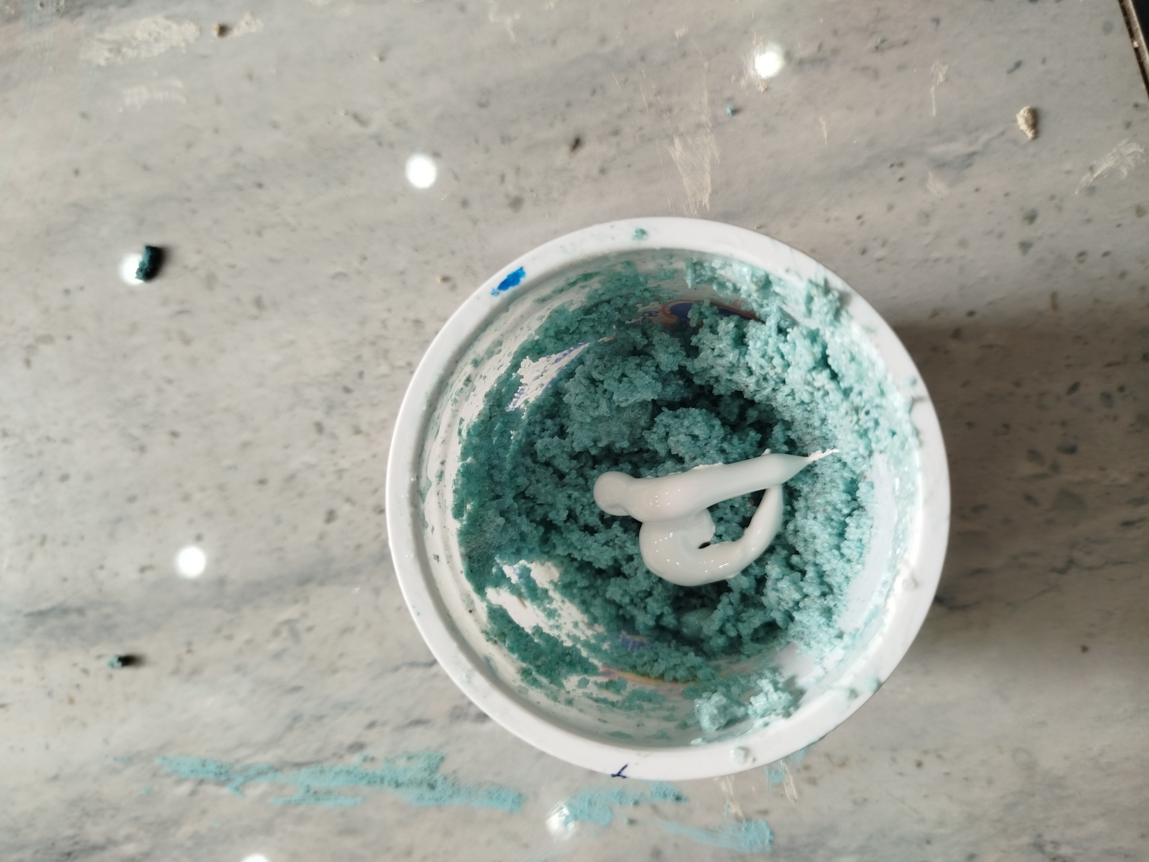 • In second step I start applying for sandy beside I put few amount of sand and white glue,mixed both ingredients well from spoon now the texture paste is ready for practical task