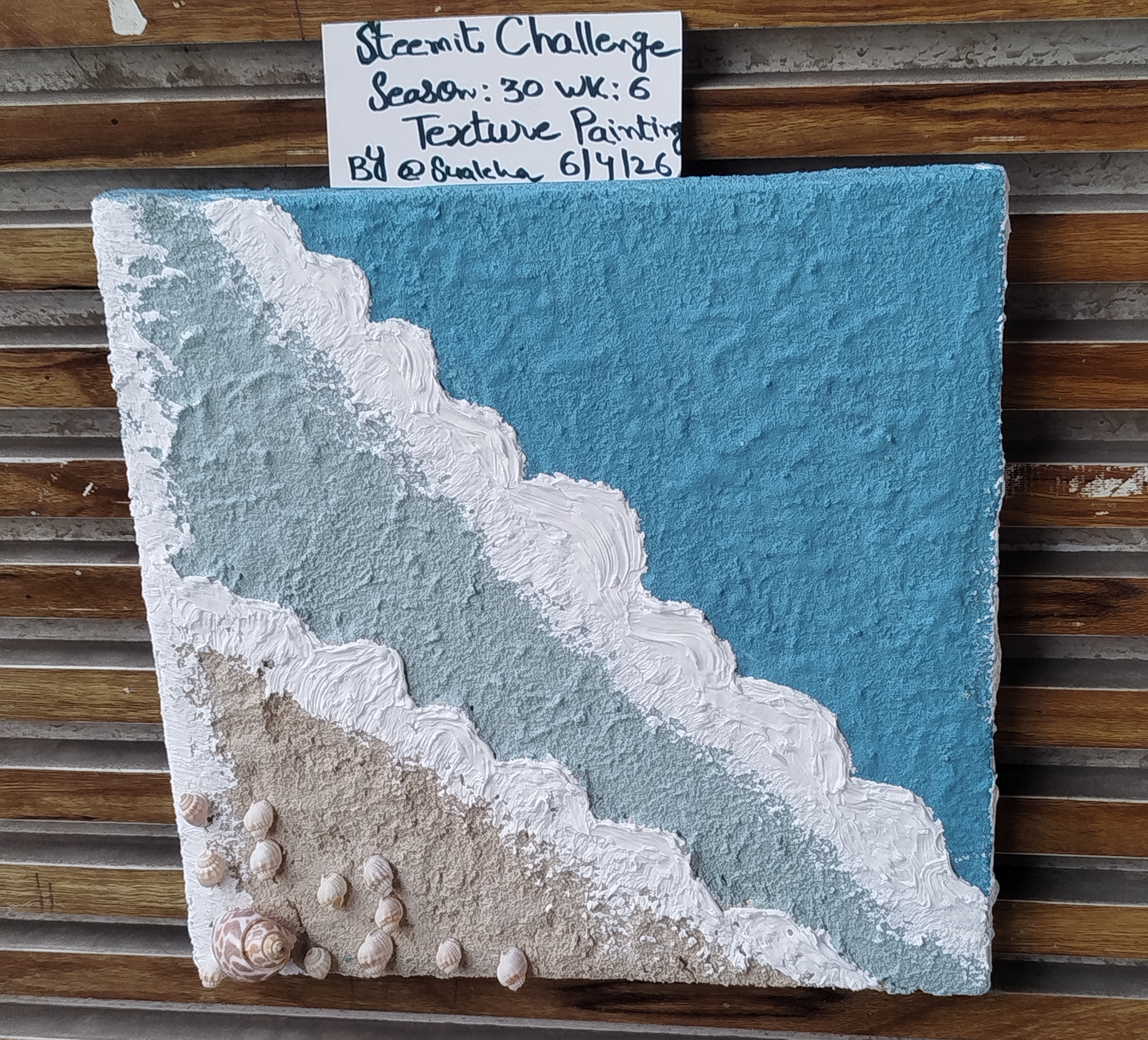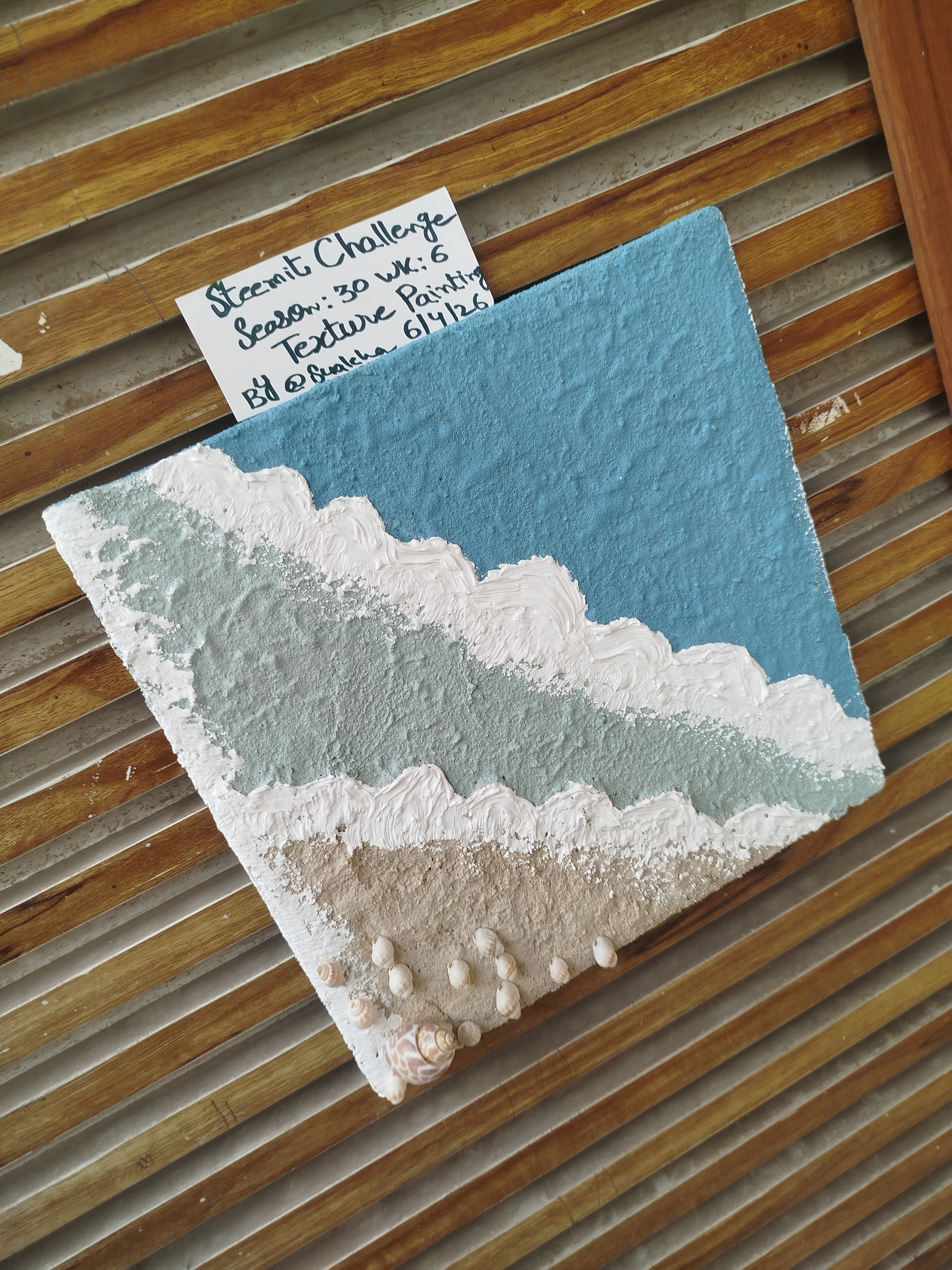 Great work, this method of creating textures with sand seems completely new and unique to me. Especially the shades of blue and white make the ocean waves very alive. This challenge of season 30 will be really great. InshaAllah, I will try to participate in this challenge. Best of luck @sualeha apu.