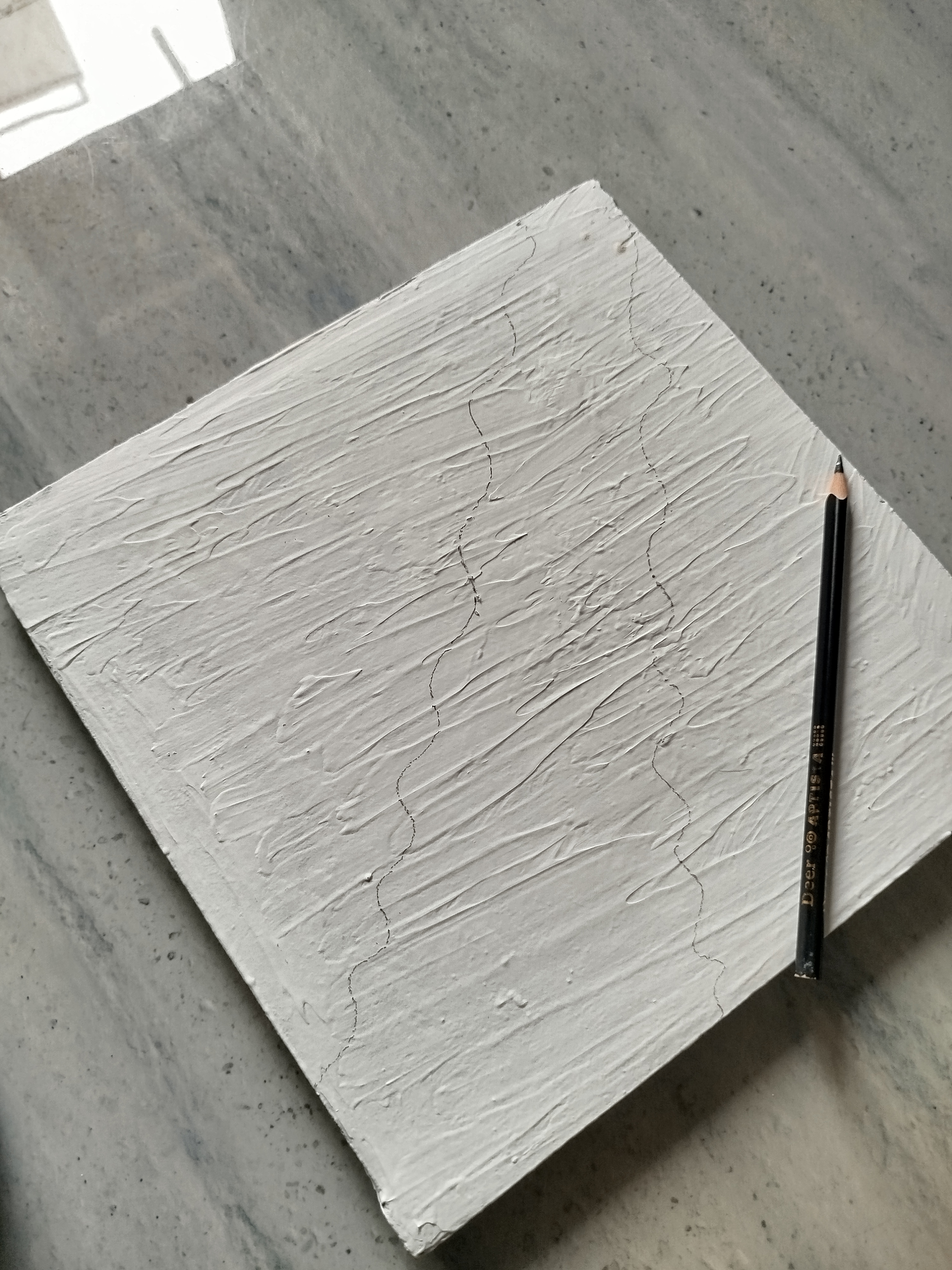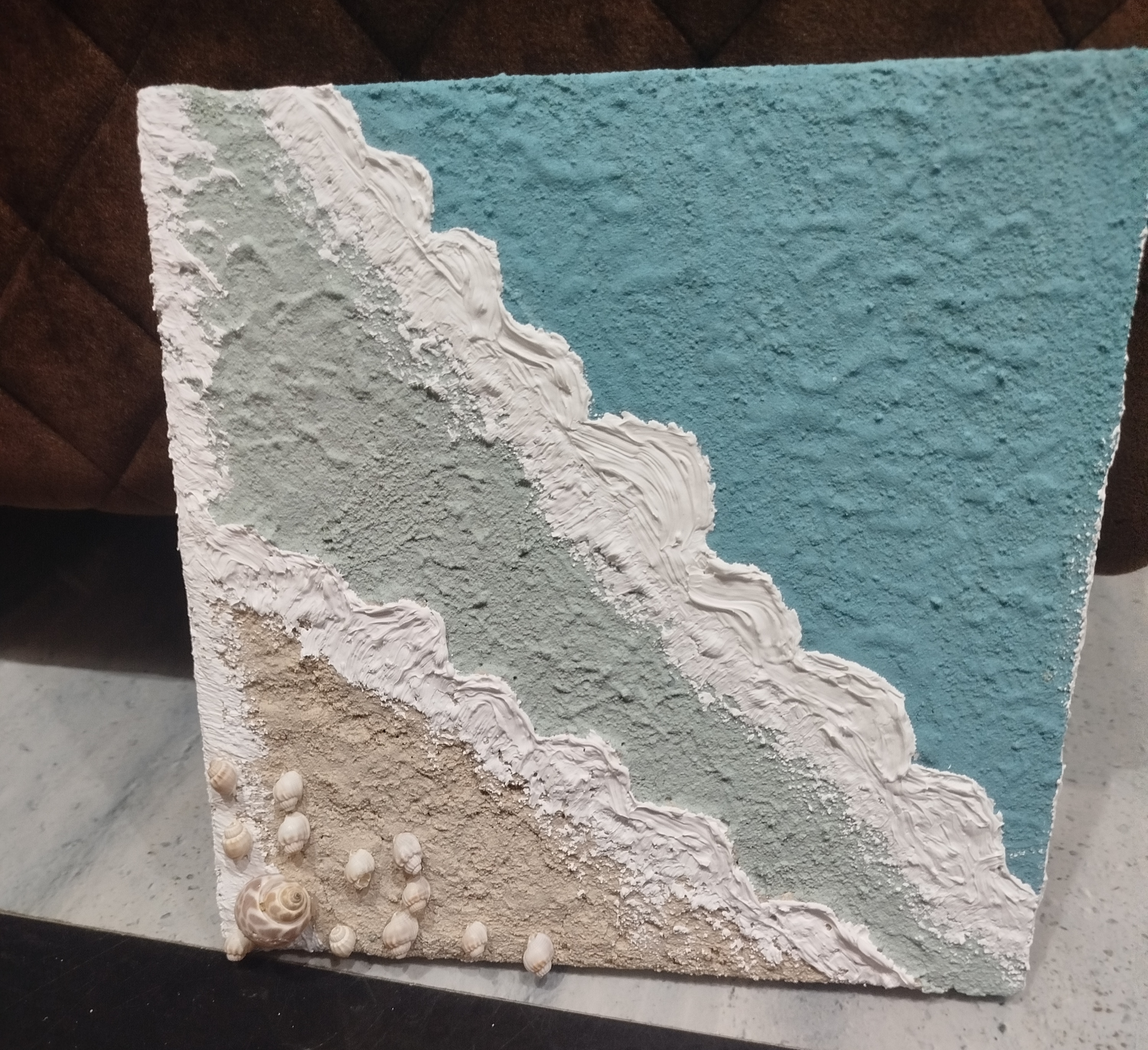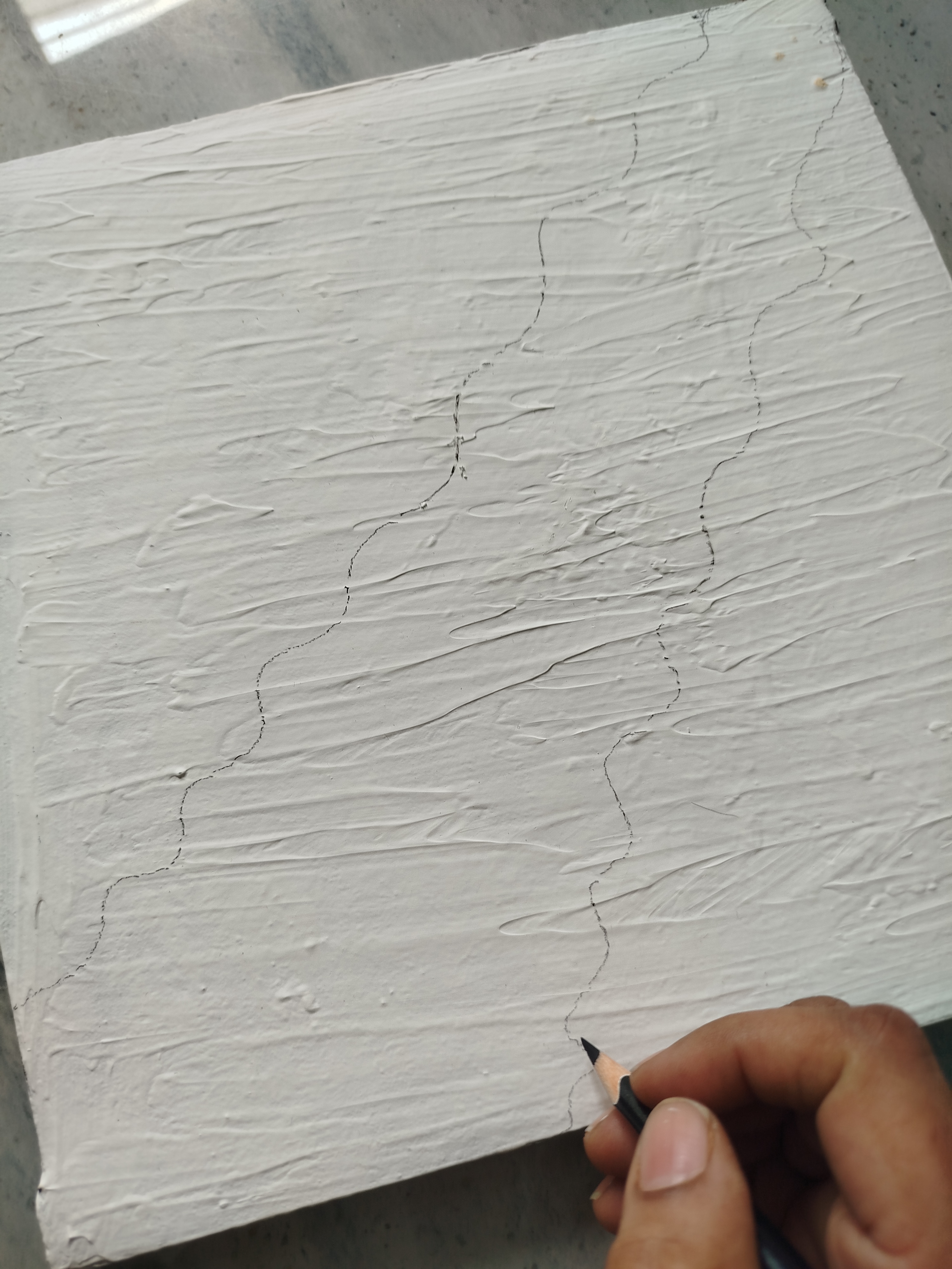 I drew beach waves view for sand texture painting from pencil on canvas board.