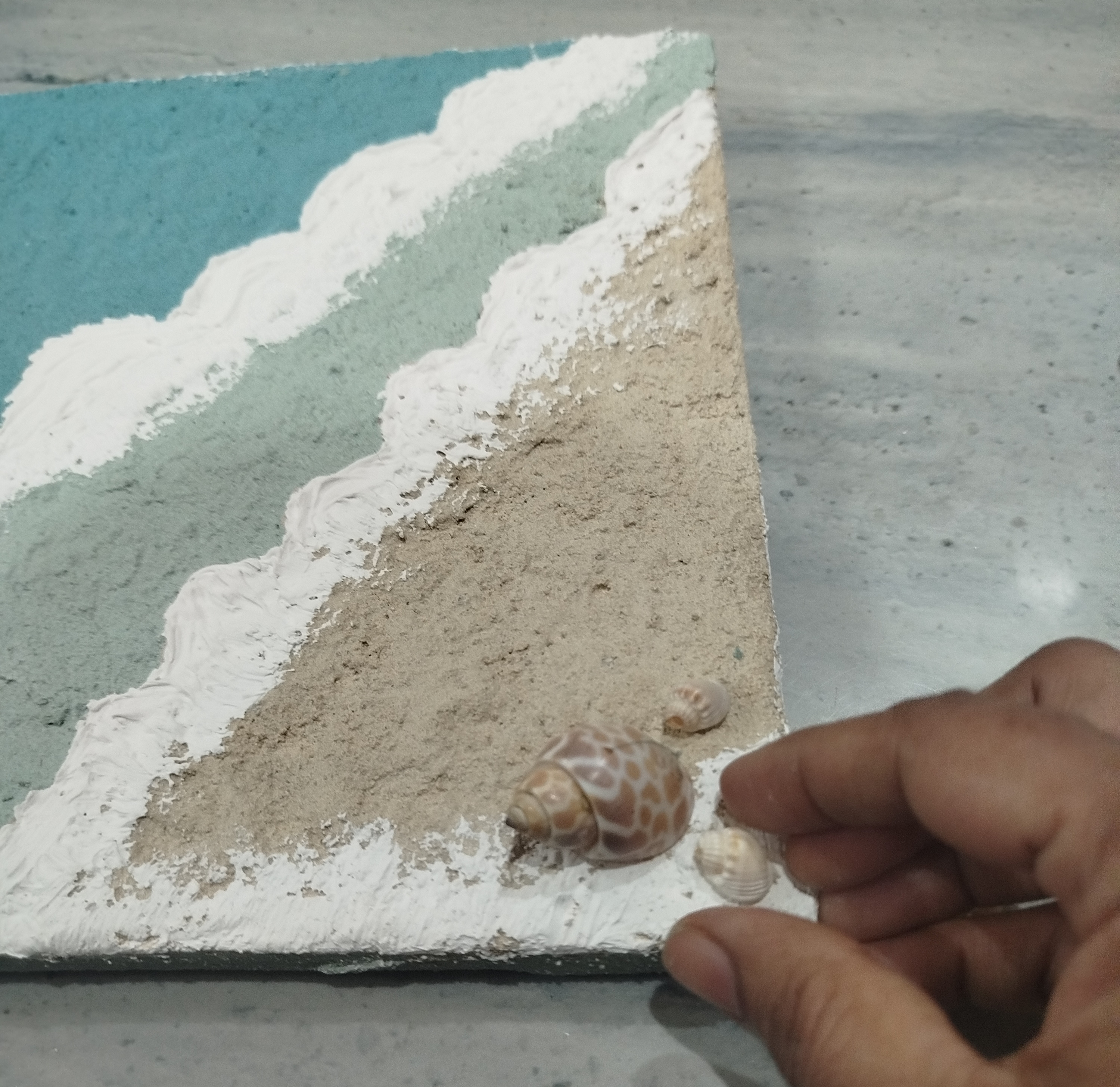 Never thought sand and glue could create something this textured and layered. The shells you used in finishing it off was a nice touch